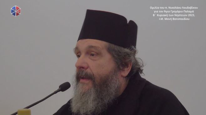 Για τον Άγιο Γρηγόριο τον Παλαμά μίλησε την Κυριακή Β’ Νηστειών από την τράπεζα της Ιεράς Μεγίστης Μονής Βατοπαιδίου ο π. Νικόλαος Λουδοβίκος.