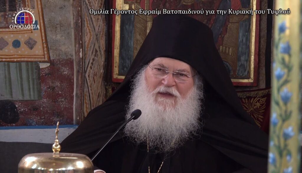 Για τη μεγάλη δοκιμασία να είναι κανείς τυφλός μίλησε ο Γέροντας Εφραίμ ο Βατοπαιδινός στην τράπεζα της Ιεράς Μονής Βατοπαιδίου σήμερα Κυριακή 24 Μαϊου 2020.