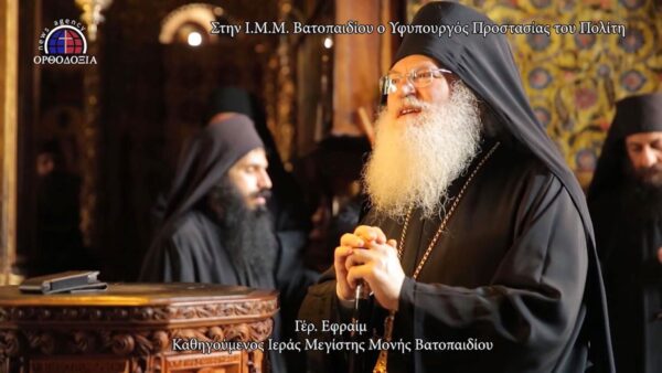 Δείτε στο βίντεο που ακολουθεί την υποδοχή και τις ομιλίες του Γέροντα Εφραίμ και του υφυπουργού