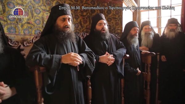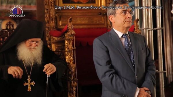Τον κ υφυπουργό υποδέχθηκαν εγκάρδια ο Καθηγούμενος της Ι.Μ.Μ. Βατοπαιδίου Γέροντας Εφραίμ και οι Βατοπαιδινοί Πατέρες.