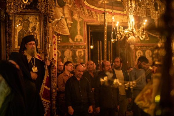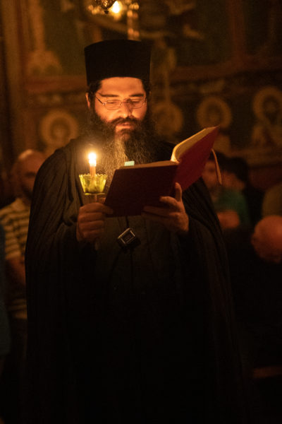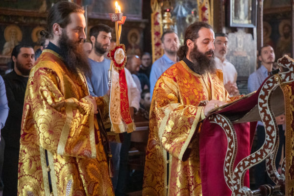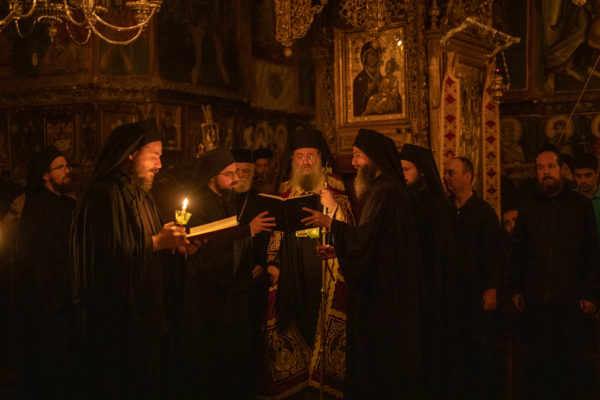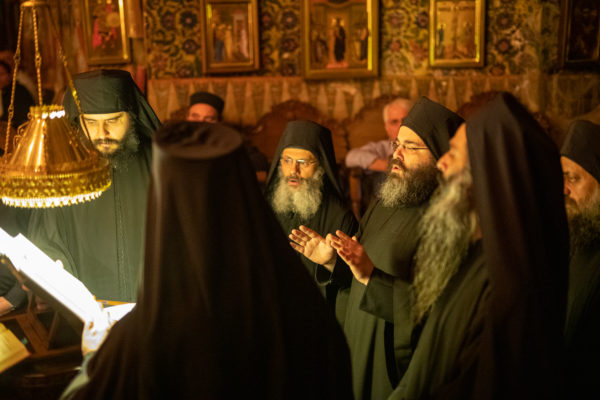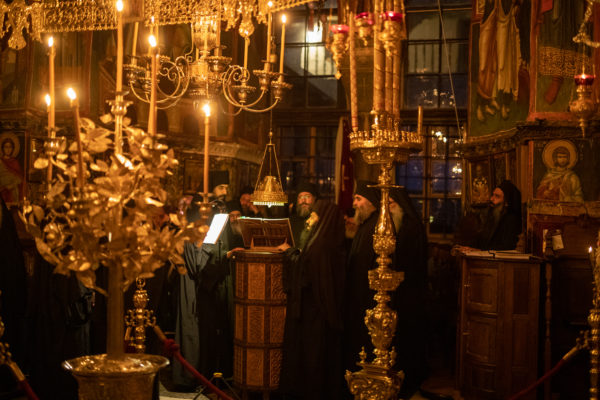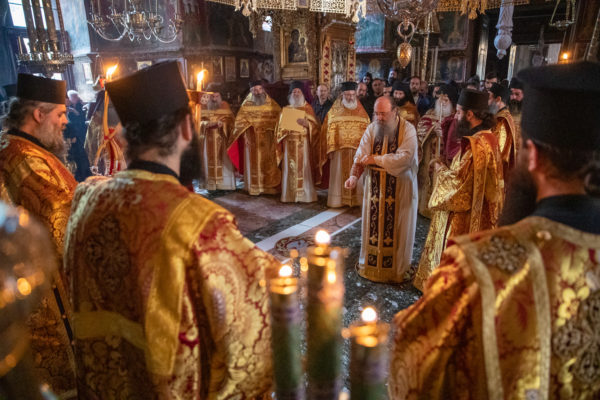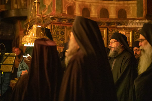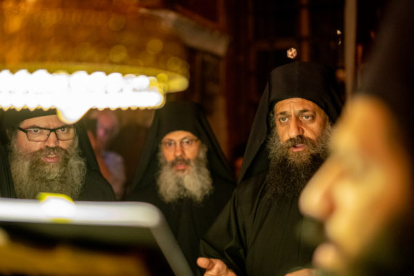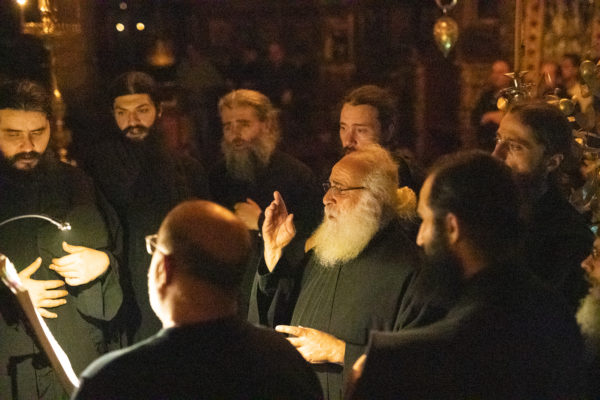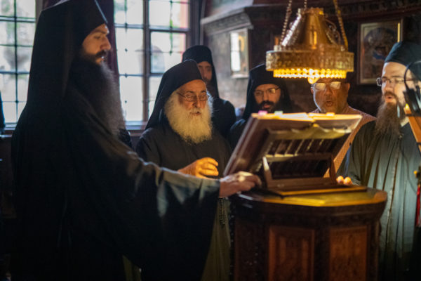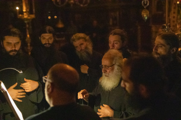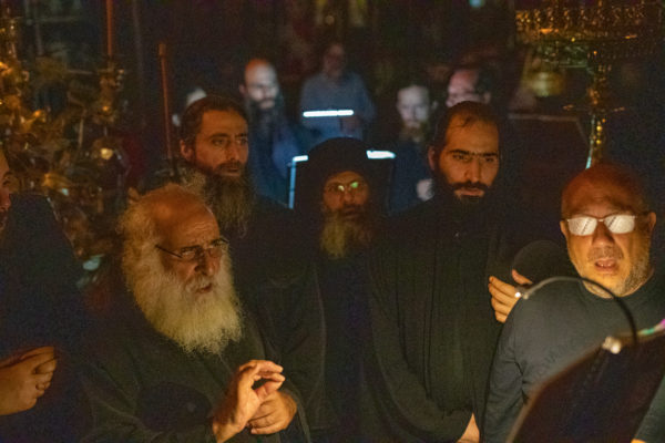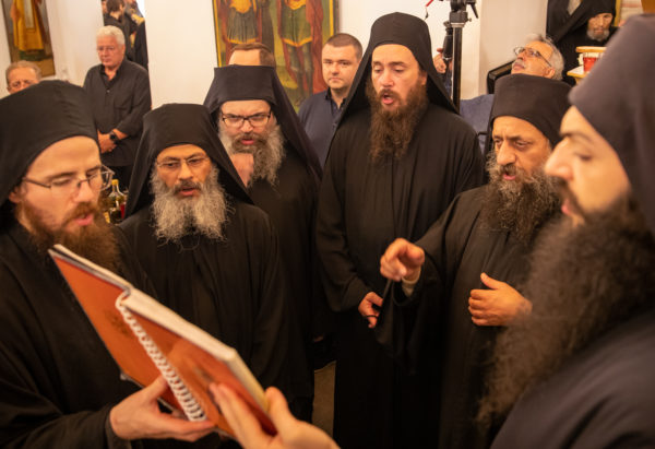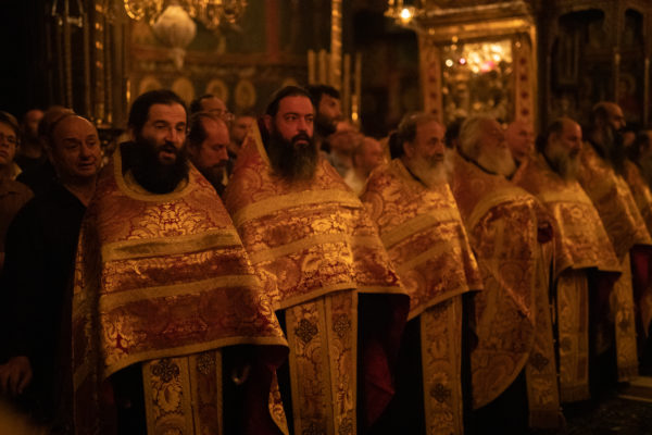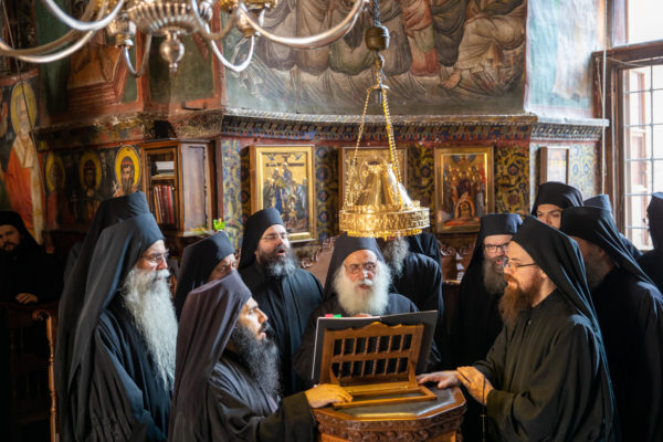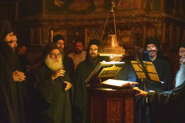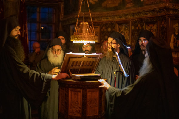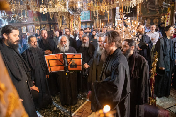 Τα αναλόγια πλαισίωσαν χοροί Βατοπαιδινών πατέρων.