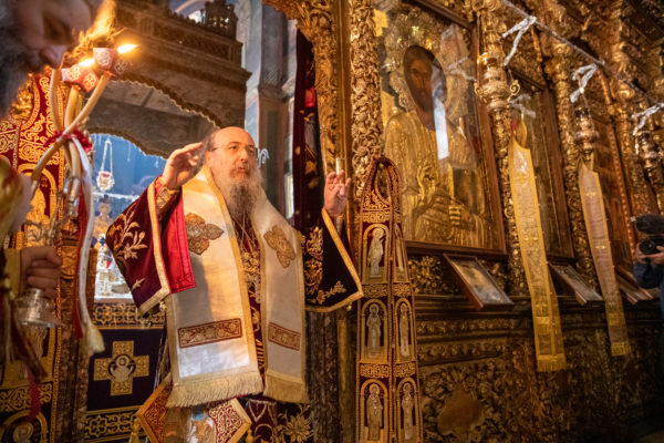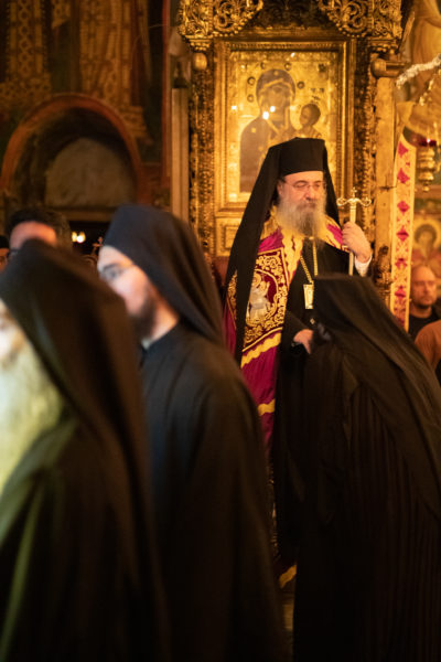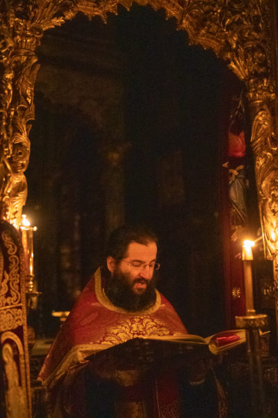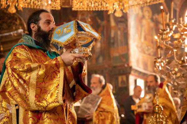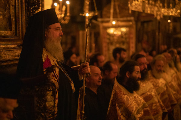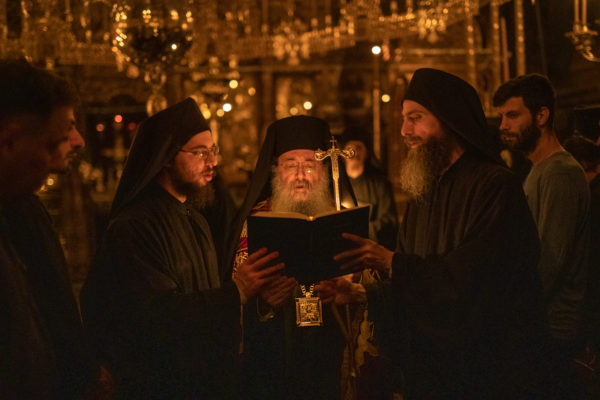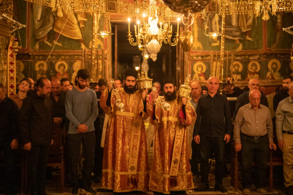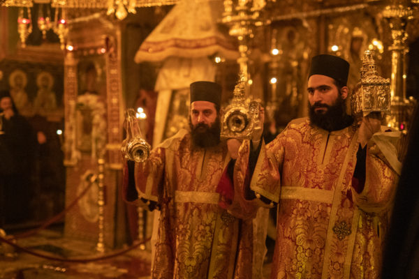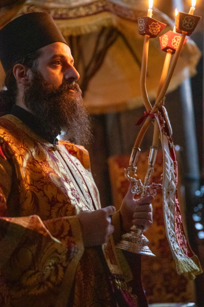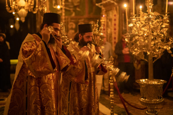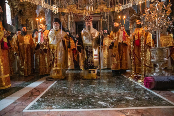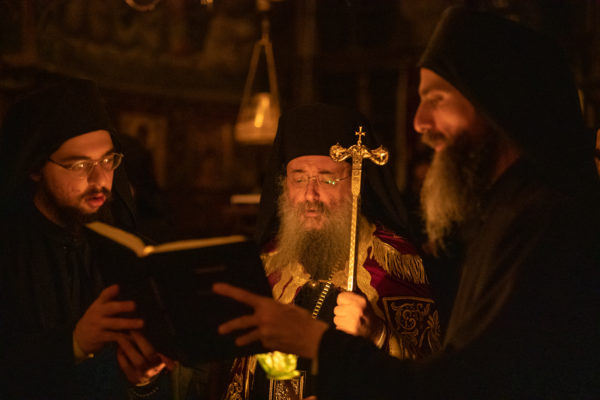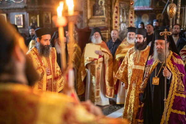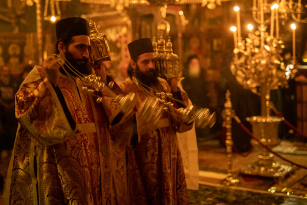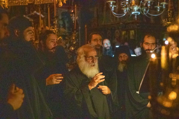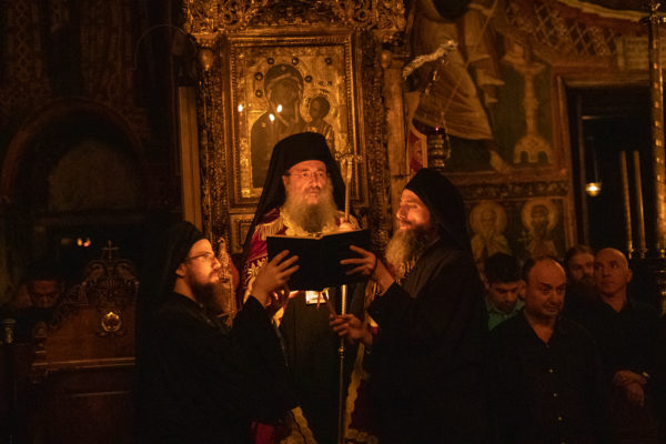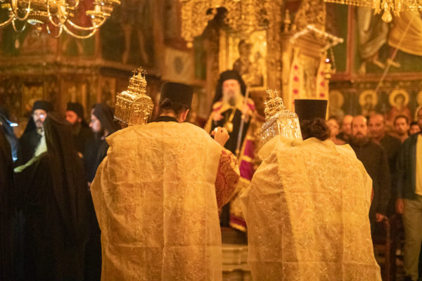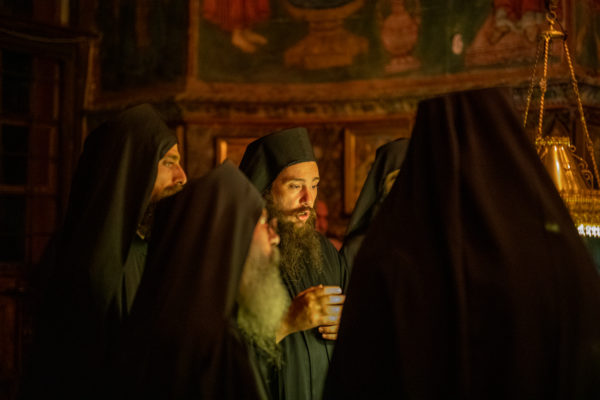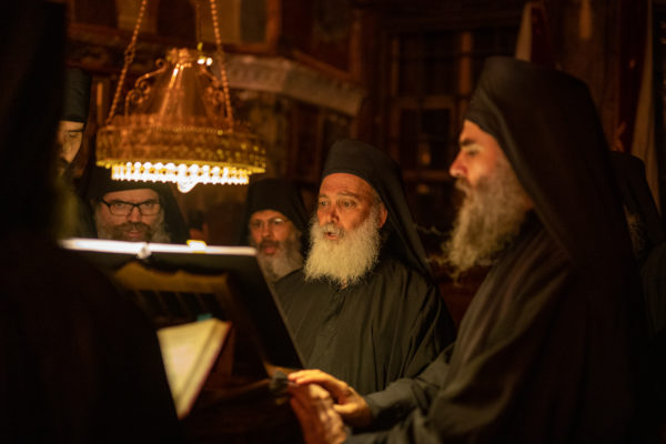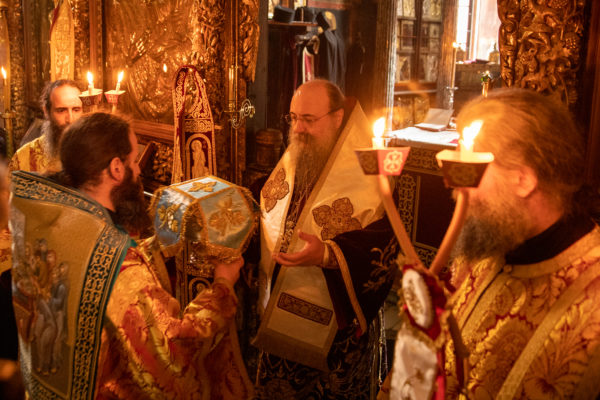 Τα αναλόγια πλαισίωσαν χοροί Βατοπαιδινών πατέρων.