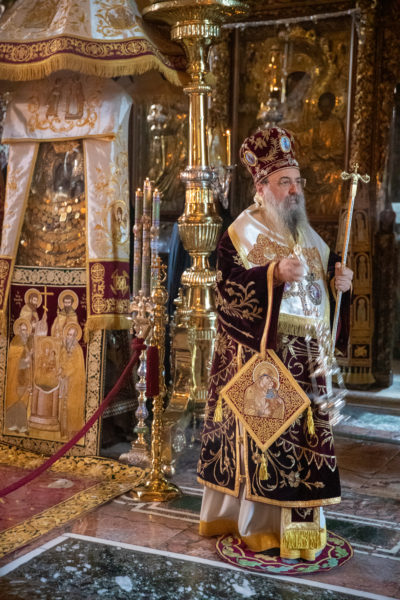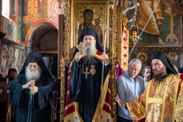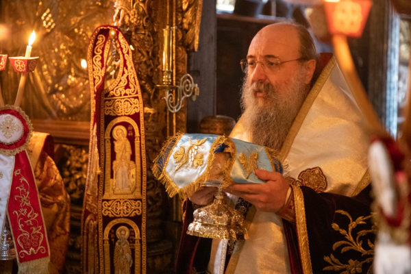 Σήμερα το πρωί τελέστηκε στο Καθολικό της Ιεράς Μονής Θεία Λειτουργία επί τη εορτή της Κοιμήσεως της Θεοτόκου. Της Ευχαριστιακής Συνάξεως προεξήρχε ο Μητροπολίτης Πατρών κ. Χρυσόστομος.