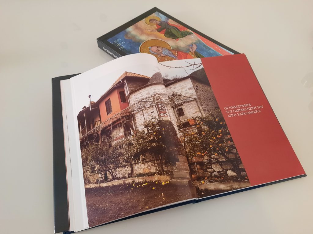 Εκδόθηκε εκ μέρους του Γέροντος Ιλαρίωνος μοναχού της Ιεράς Καλύβης του Αγίου Χαραλάμπους, Ιεράς Νέας Σκήτης του Αγίου Όρους, ο νέος τόμος με τίτλο “Οι τοιχογραφίες του παρεκκλησίου του Αγίου Χαραλάμπους”. Παραθέτουμε εικόνες και περιγραφή απο την Έκδοση: