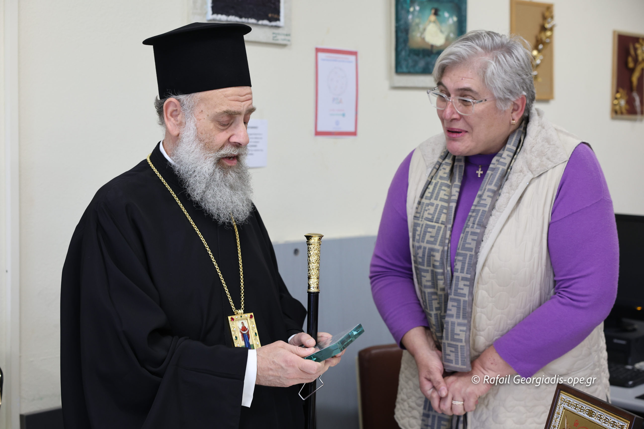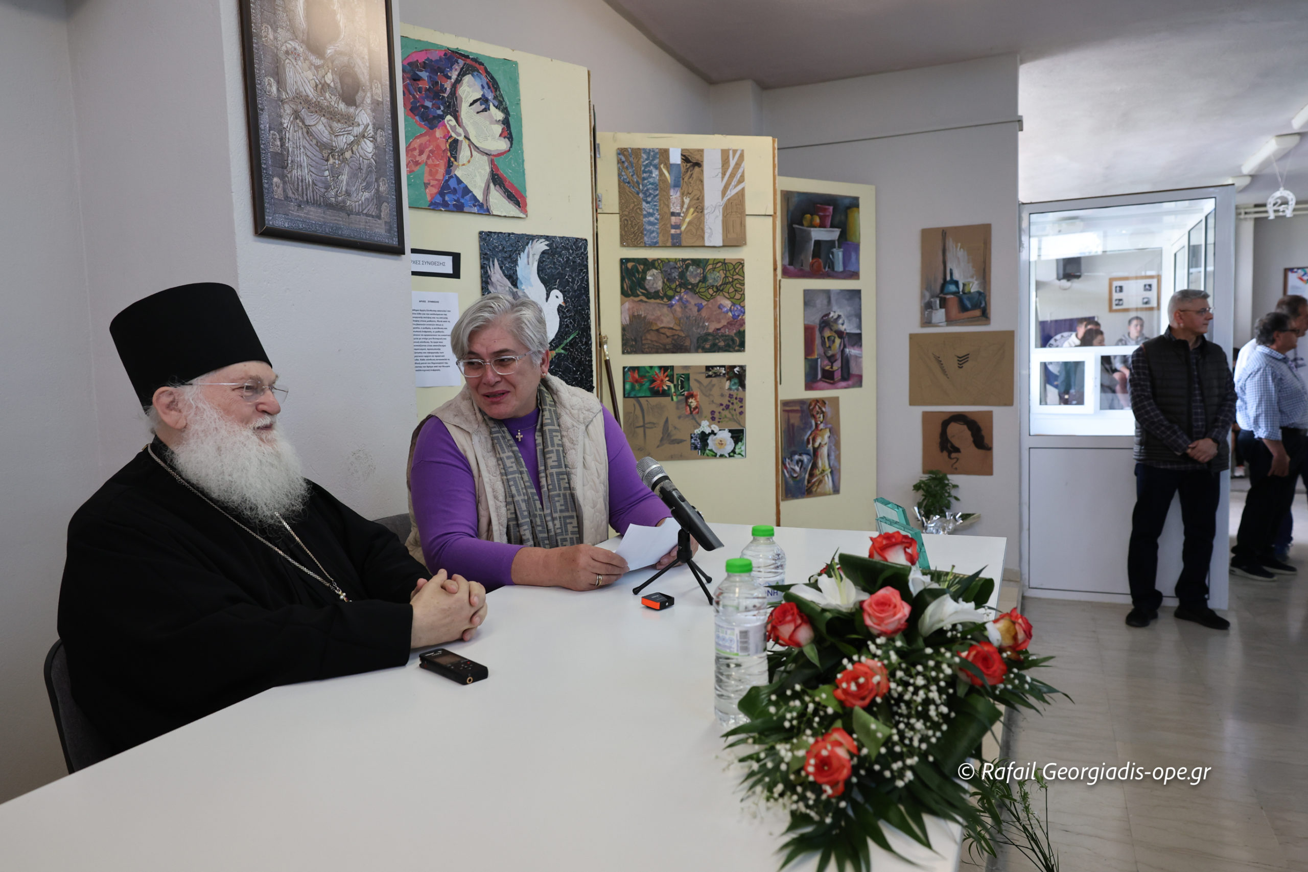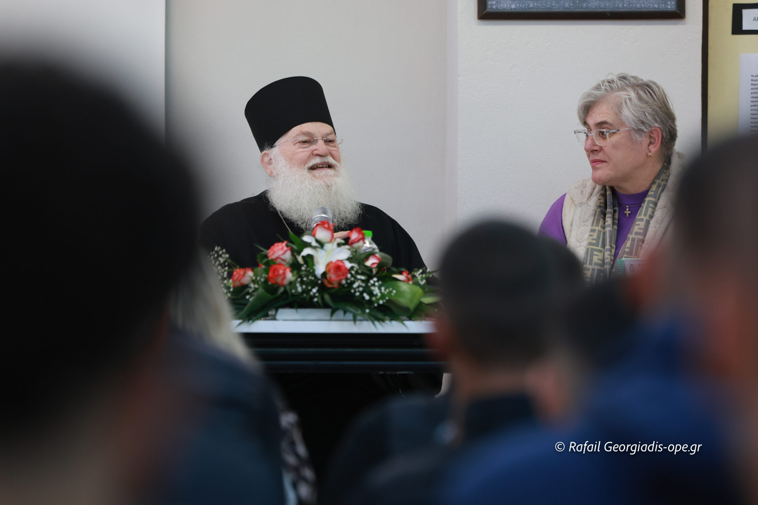 Τον Γέροντα Εφραίμ καλωσόρισε η Διευθύντρια του 2ου ΕΠΑΛ κα. Ουρανία Μαγγίνα καθώς και μια μαθήτρια εκ μέρους των μαθητών.