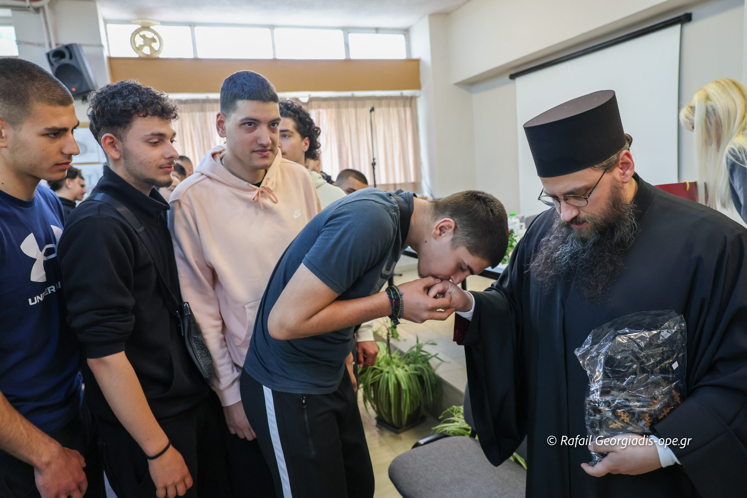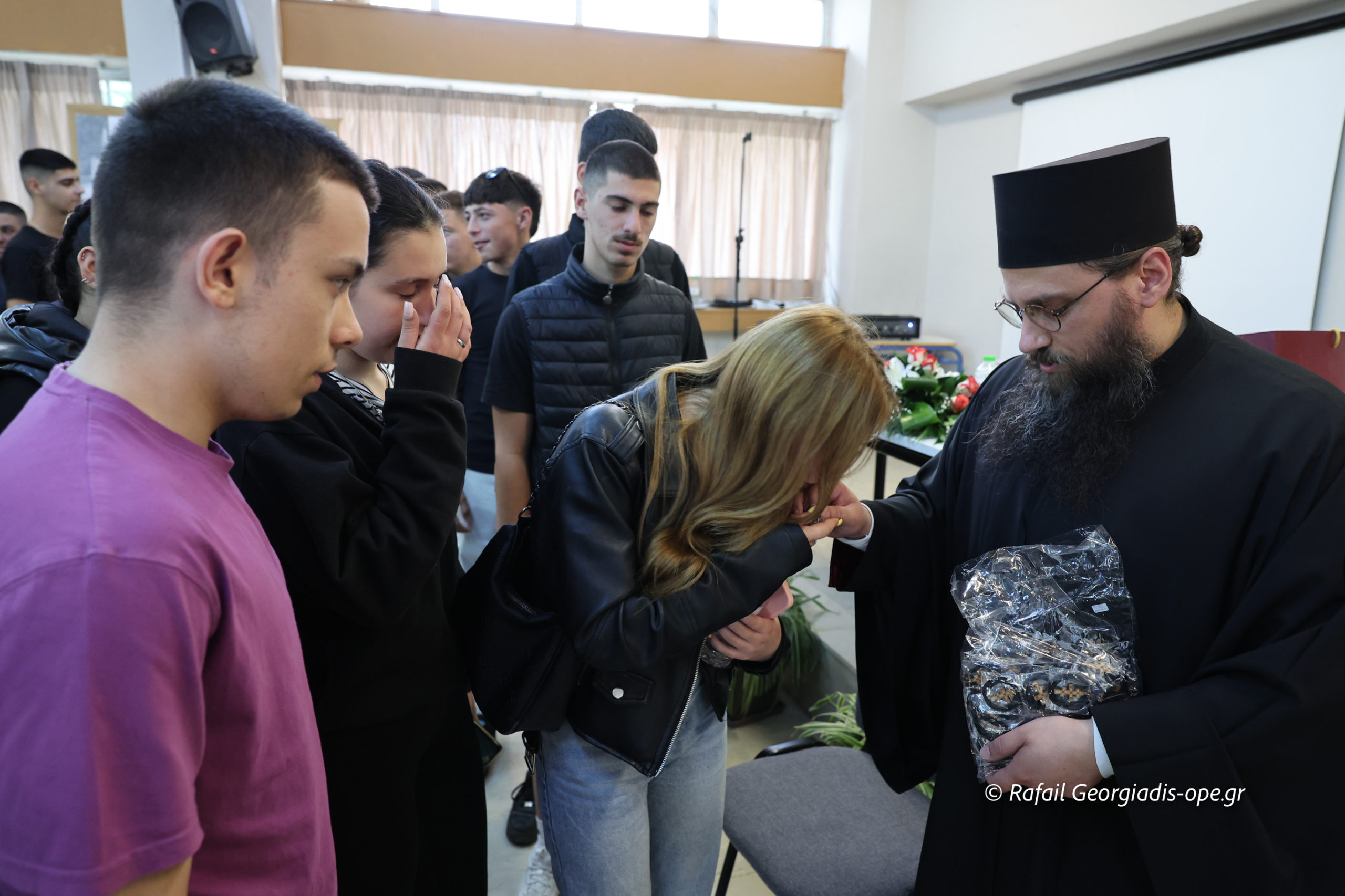 Ο Γέροντας μίλησε στα παιδιά της Γ’ Λυκείου και στους καθηγητές, ενώ απάντησε και σε ερωτήσεις τους για πνευματικά θέματα. Μερικά από τα παιδιά μάλιστα είχαν επισκεφθεί το Άγιο Όρος και ήθελαν να μεταφέρουν στους συμμαθητές τους, μέσω του Γέροντος , εμπειρίες που βίωσαν εκεί.