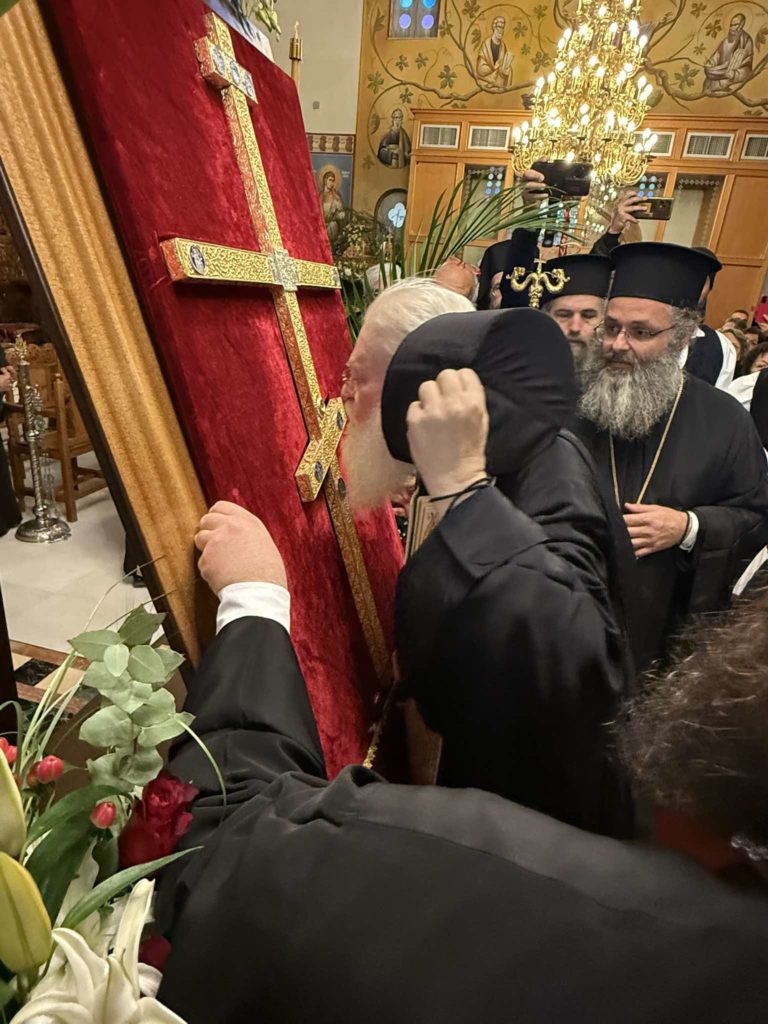 Ο Γέροντας Εφραίμ κόμισε το ιερό σέβασμα της πίστεώς μας το οποίο θα παραμείνει στο διηνεκές στον Ιερό Ναό Κοιμήσεως της Θεοτόκου. Τον Σταυρό υποδέχθηκαν με βαθιά συγκίνηση ο Μητροπολίτης Αργολίδος κ. Νεκτάριος μετά του ιερού κλήρου, των αρχόντων και του ευσεβούς λαού που προσήλθε να λάβει την ευλογία εκ του Αγιωνύμου Όρους.