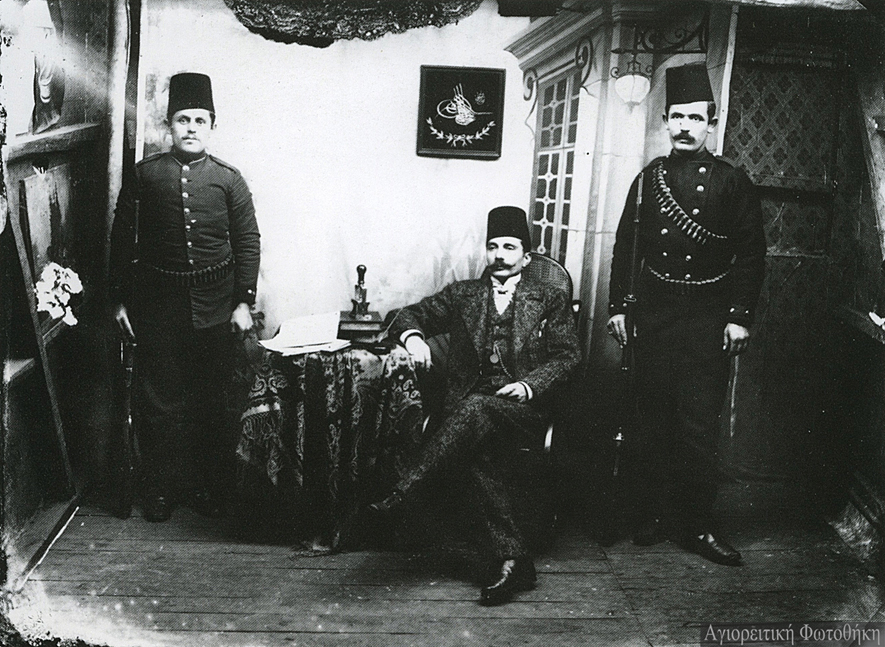 Ο Οθωμανός διοικητής (καϊμακάμης) του Αγίου Όρους με τα σύμβολα της εξουσίας και αστυνομικοί.