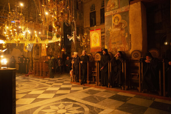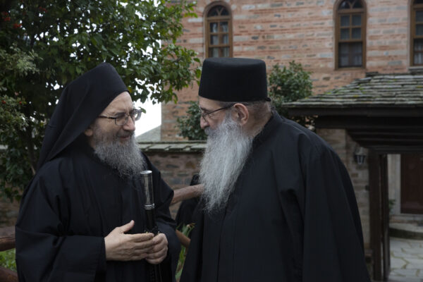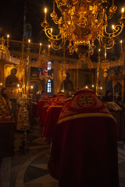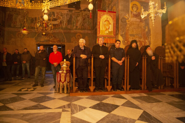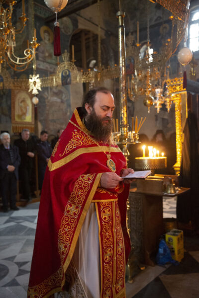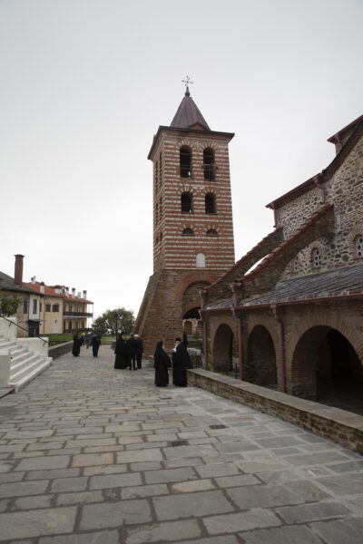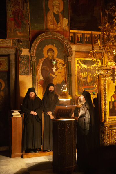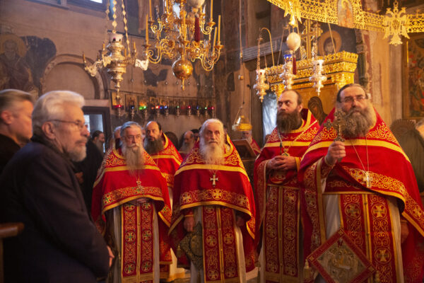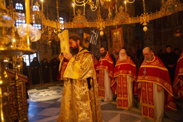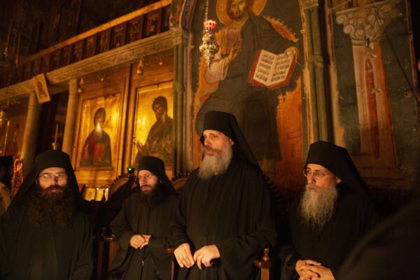 Στον αριστερό χορό έψαλε στα σερβικά ο χορός των πατέρων της Μονής Χιλανδαρίου.