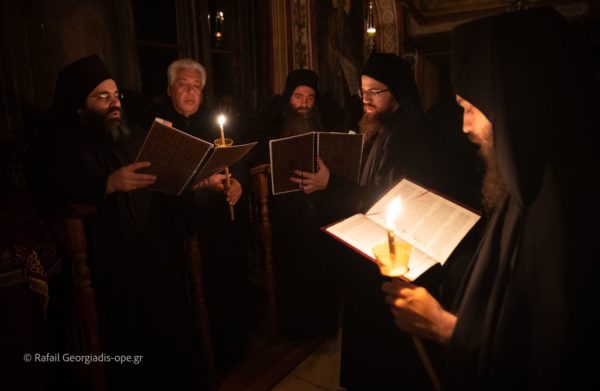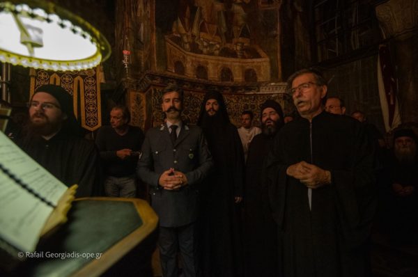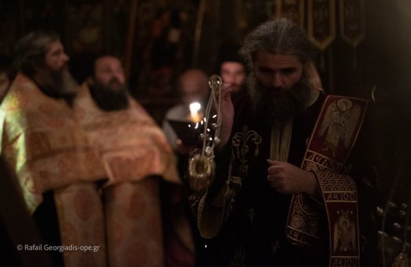 Αργότερα, εκκίνησε ο Πανηγυρικός Εσπερινός στο Καθολικό της Μονής και ακολούθησε η ολονύχτια Αγρυπνία.