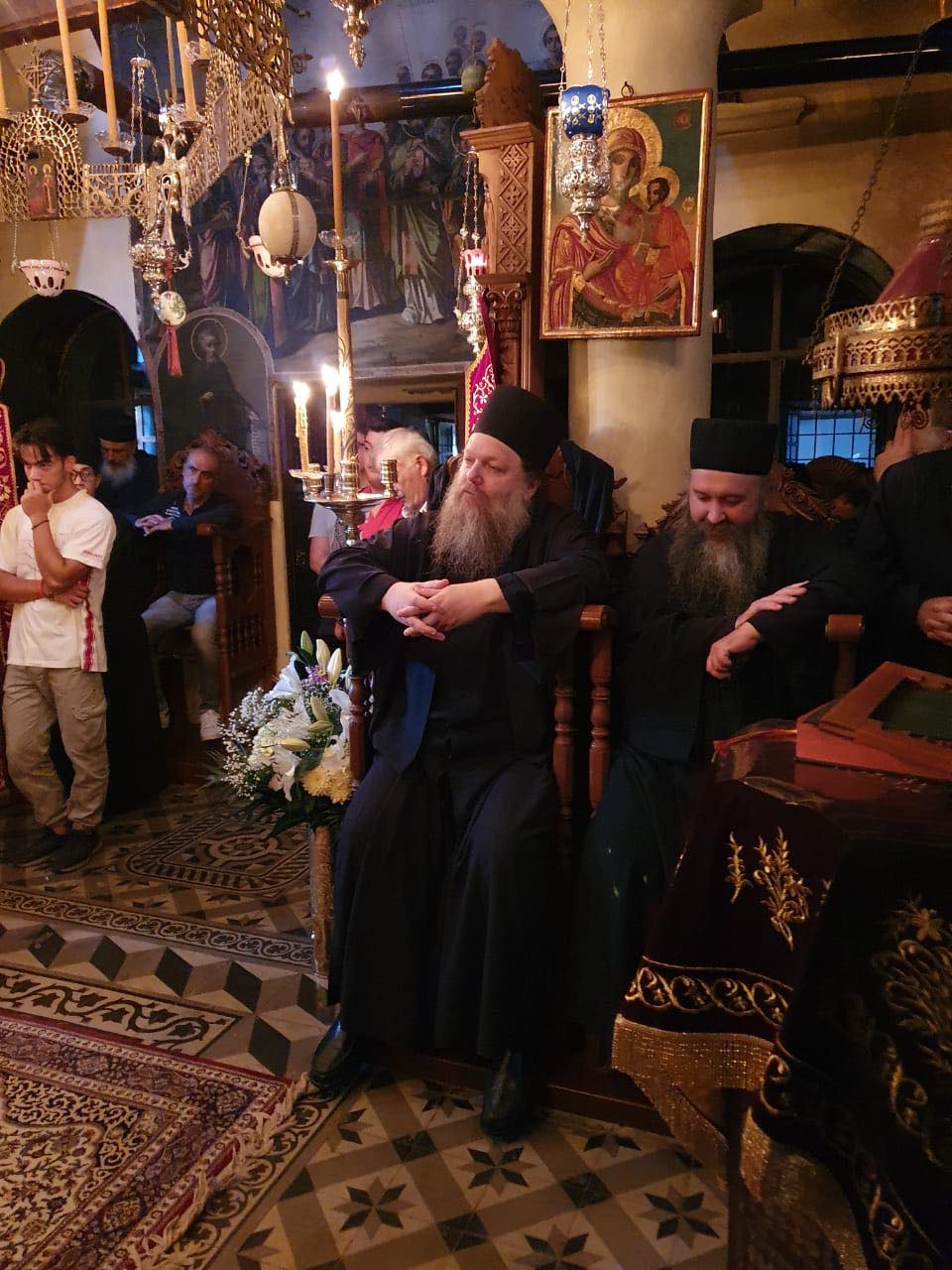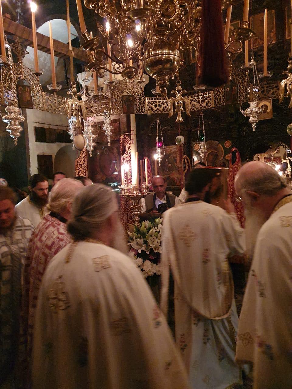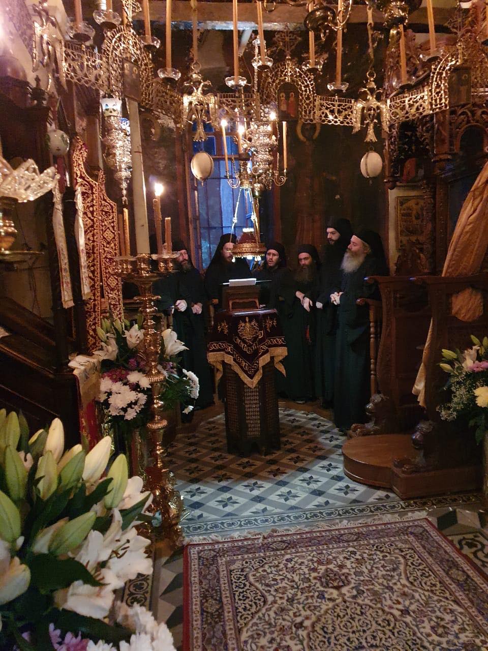 Στον δεξιό χορό διακρίνονται να ψάλλουν οι πατέρες της Μονής Βατοπαιδίου.