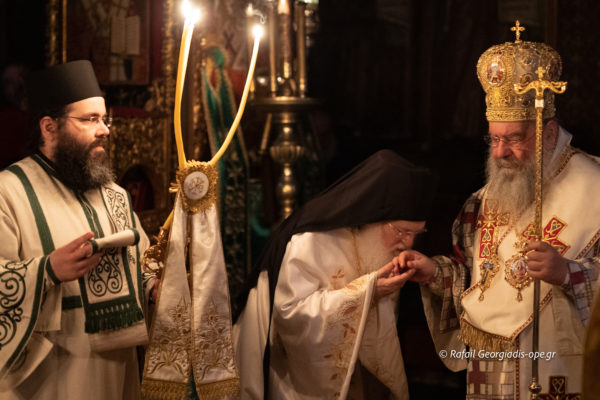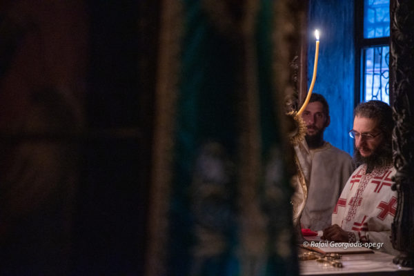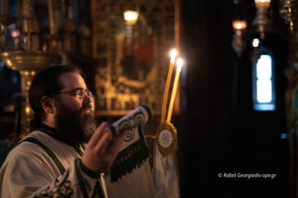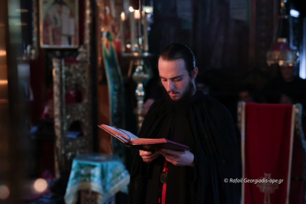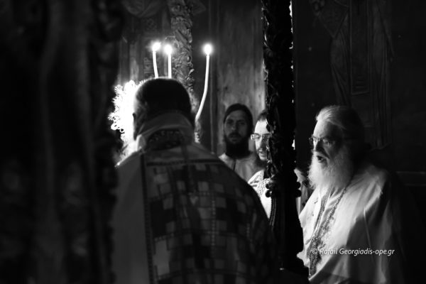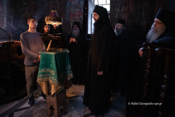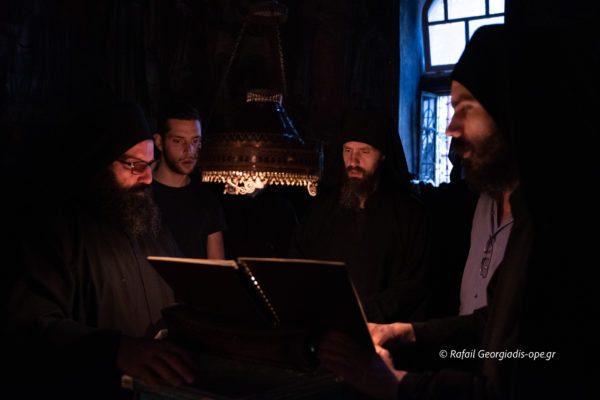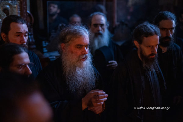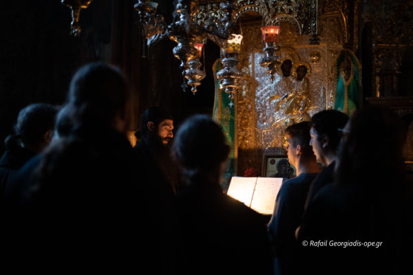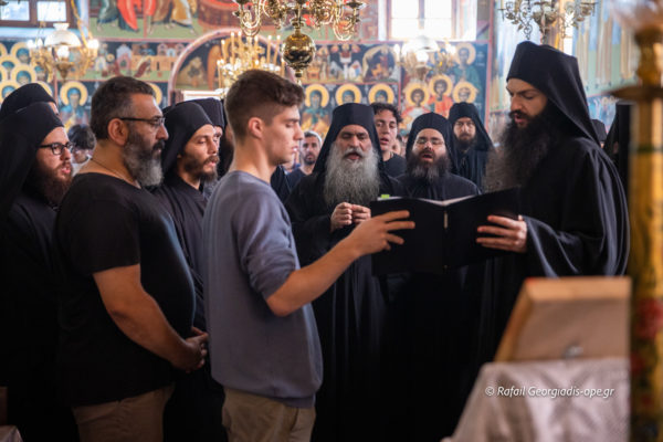 Στο δεξιό αναλόγιο έψαλλαν πατέρες από την Ι.Μ.Μ. Βατοπαιδίου και στον αριστερό χορό πατέρες της Μονής Κουτλουμουσίου.