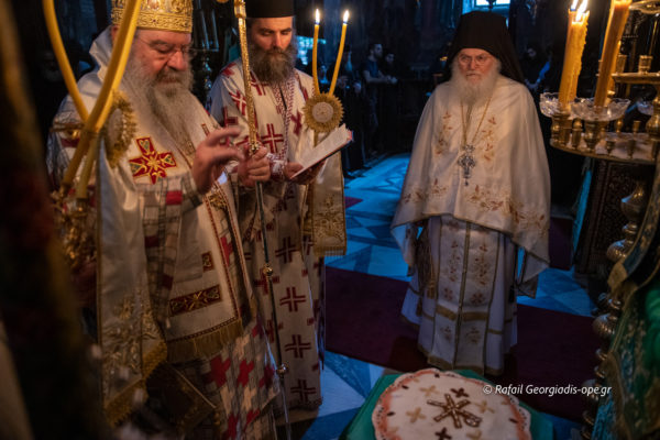 Στην πανηγυρική Αρχιερατική Θεία Λειτουργία ιερούργησε ο Πανιερώτατος Μητροπολίτης Λεμεσού κ. Αθανάσιος, πλαισιούμενος από τον Καθηγούμενο της Μονής Βατοπαιδίου Γέροντα Εφραίμ, τον Καθηγούμενο της Μονής Κουτλουμουσίου Γέροντα Νικόλαο και Αγιορείτες πατέρες.