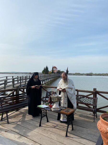 Θεία Λειτουργία στο εκκλησάκι της Παναγίας Παντάνασσας τελέστηκε σήμερα, Δευτέρα της Διακαινησίμου, στο Βατοπαιδινό Μετόχι του Αγίου Νικολάου στο Πόρτο Λάγος.