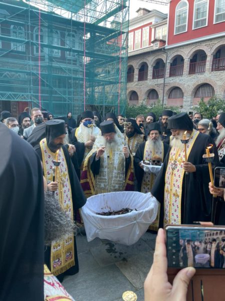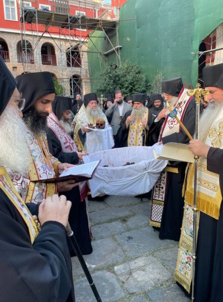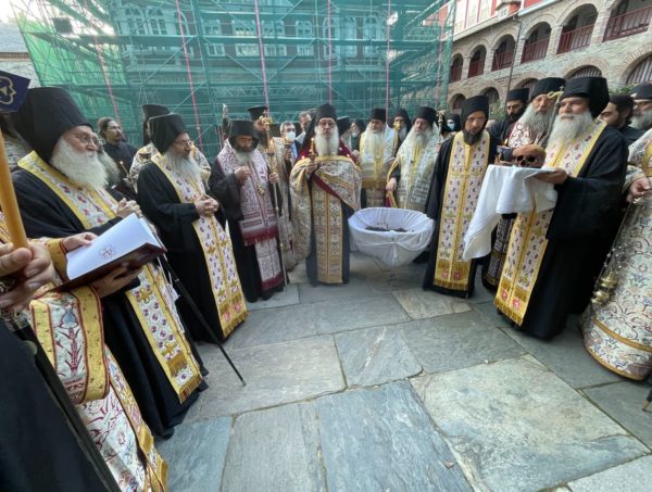 Σήμερα το απόγευμα (20/10/21) τελέσθηκε η Ακολουθία του Εσπερινού και εν συνεχεία οι Αρχιερείς, οι Καθηγούμενοι και οι λοιποί πατέρες εν πομπή μετέβησαν στον τάφο του μακαριστού Γέροντος, ενώπιον του οποίου εψάλη ειδική ακολουθία επί τη ανακομιδή λειψάνων.