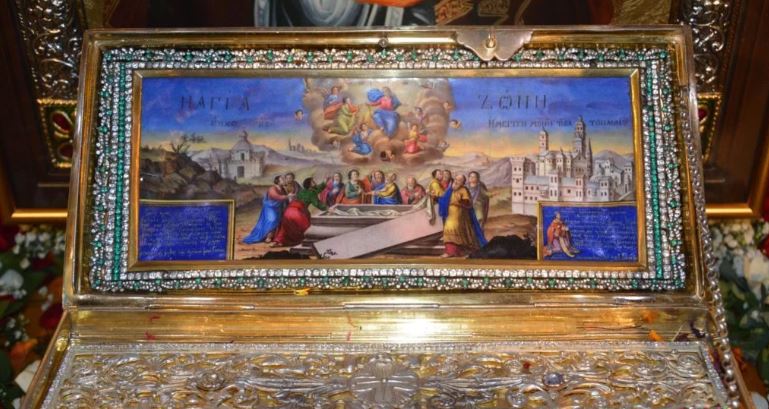 Κατά την ιερή παράδοση την Αγία Ζώνη παρέδωσε η Παναγία στον Απόστολο Θωμά αμέσως μετά την κοίμησή της και στη συνέχεια την ανάληψή της.
