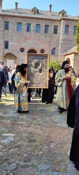 Δείτε στιγμιότυπα και βίντεο τόσο από τη μεταφορά της Παναγίας της Πορταΐτισσας από το εκκλησάκι της στον κυρίως ναό της Ιεράς Μονής Ιβήρων Αγίου Όρους όσο και από την αγρυπνία, που τελέστηκε τα ξημερώματα προς τιμήν της Κοίμησης της Θεοτόκου, που εορτάζεται σήμερα στο Περιβόλι της Παναγίας.
