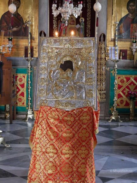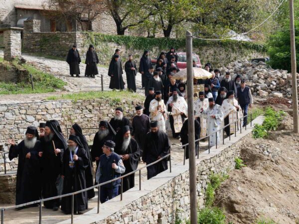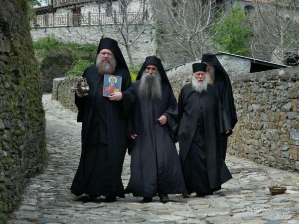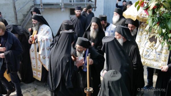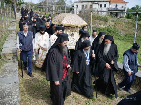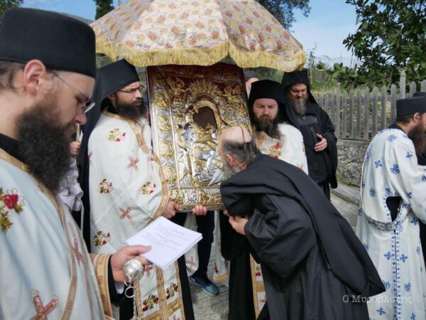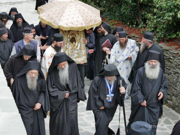 Την εικόνα συνόδευαν τα τέσσερα μέλη της Ιεράς Επιστασίας και περίπου εβδομήντα μοναχοί και ιερείς, τηρώντας τις απαραίτητες αποστάσεις.