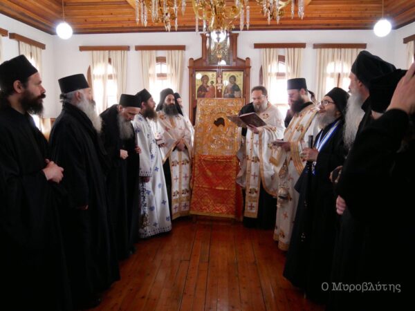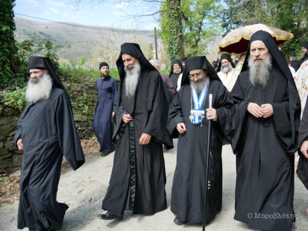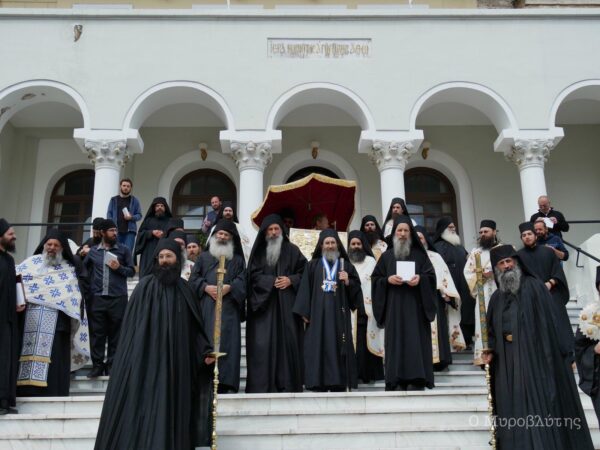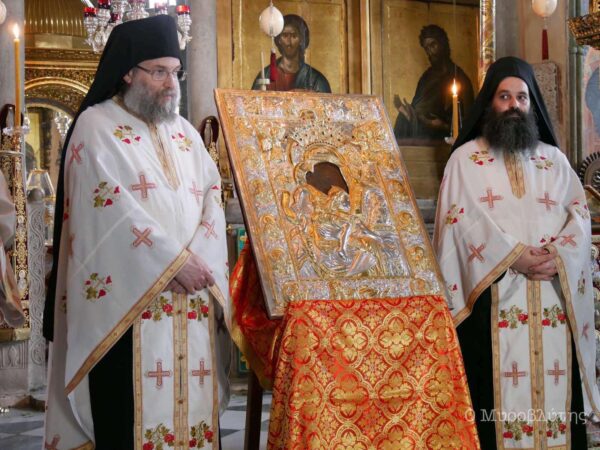 Στη σημερινή λιτανεία της Ιεράς Εικόνας της Παναγίας Άξιον Εστί στις Καρυές συμμετείχαν εκπρόσωποι των ιερών μονών του Αγίου Όρους.