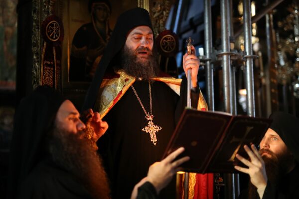 Της Αγρυπνίας και της Πανηγυρικής Θείας Λειτουργίας, προεξήρχε ο Καθηγούμενος της Ι.Μ. Χιλανδαρίου Γέροντας Μεθόδιος, ενώ συλλειτούργησαν ο Καθηγούμενος της Ι.Μ. Καρακάλου Γέροντας Φιλόθεος και ο Καθηγούμενος της ΙΜΜ. Βατοπαιδίου Γέροντας Εφραίμ.