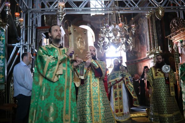 Της Αγρυπνίας και της Πανηγυρικής Θείας Λειτουργίας, προεξήρχε ο Καθηγούμενος της Ι.Μ. Χιλανδαρίου Γέροντας Μεθόδιος, ενώ συλλειτούργησαν ο Καθηγούμενος της Ι.Μ. Καρακάλου Γέροντας Φιλόθεος και ο Καθηγούμενος της ΙΜΜ. Βατοπαιδίου Γέροντας Εφραίμ.