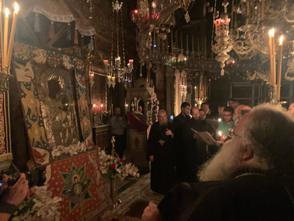 Το πρωΐ της Πέμπτης 14/27 Αυγούστου χοροστάτησε στον Όρθρο και τη Θεία Λειτουργία και το απόγευμα προέστη κατά την τάξη της μεταφοράς της θαυματουργού εικόνας της Πορταΐτισσας από το παρεκκλήσι στο Καθολικό. Ακολούθησε ο μικρός Εσπερινός και η τράπεζα και στη συνέχεια η ολονύκτια Αγρυπνία προς τιμήν της Θεοτόκου μέχρι τις πρώτες πρωινές ώρες, κατά την αγιορειτική τάξη, με την παρουσία και του Διοικητού του Αγίου Όρους κ. Αθανασίου Μαρτίνου.