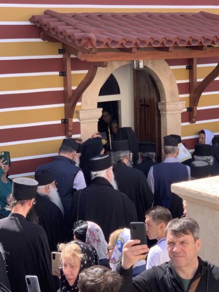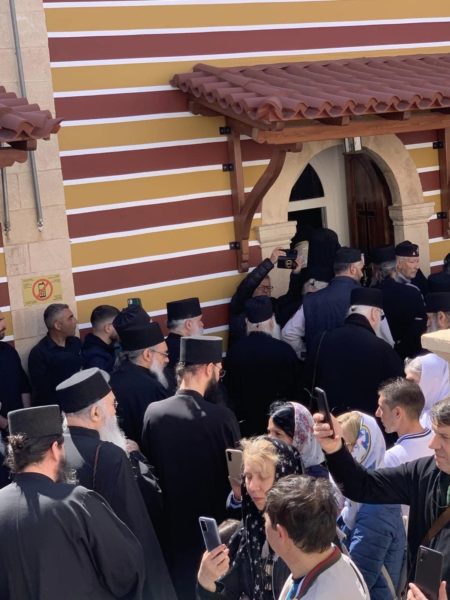 Τους υποδέχτηκε ο Σεβασμιώτατος Μητροπολίτης Ύδρας κ. Εφραίμ και η Καθηγουμένη της Ιεράς Μονής, ενώ τους συνόδευε ο Πολιτικός Διοικητής του Αγίου Όρους Αθανάσιος Μαρτίνος.