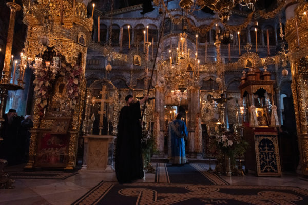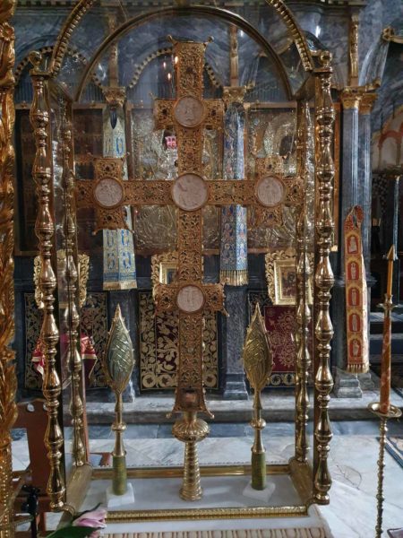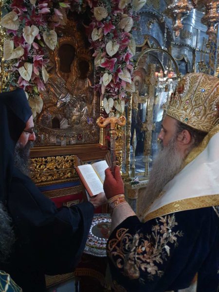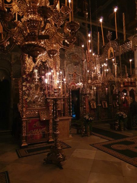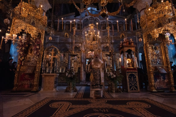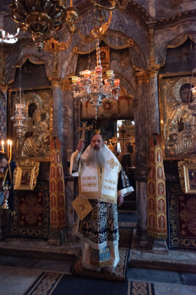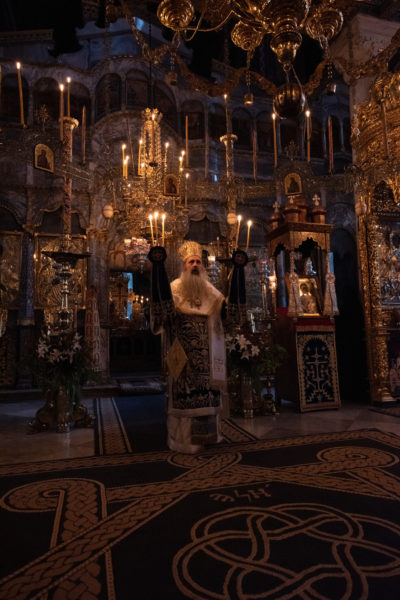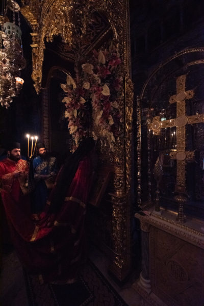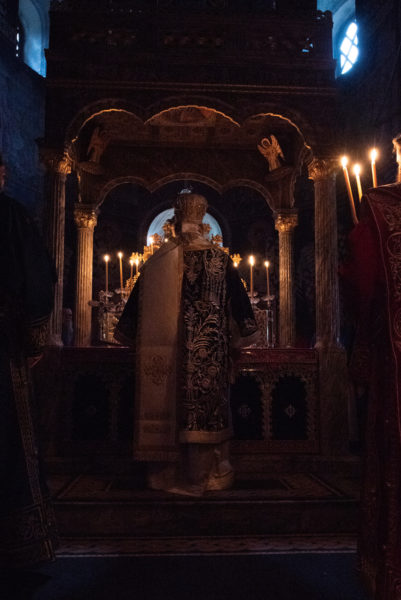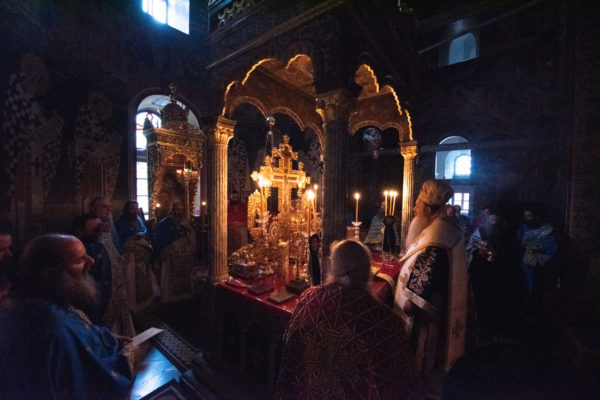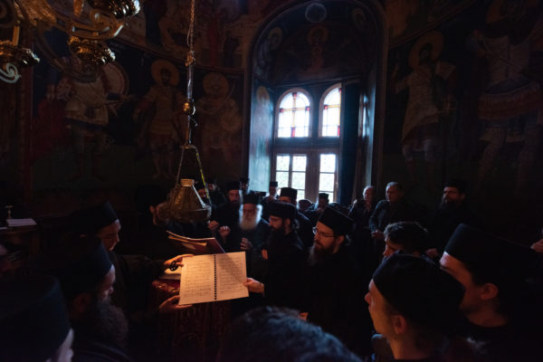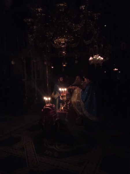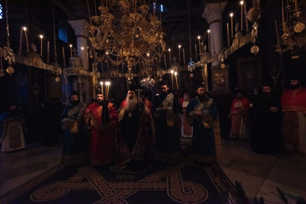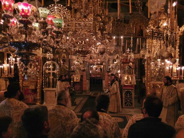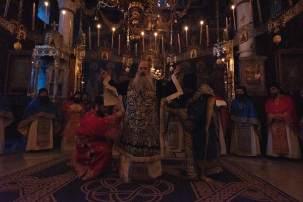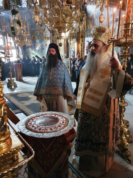 Εν συνεχεία, ετελέσθη η Ιερά Αγρυπνία σύμφωνα με το αθωνικό τυπικό, προεξάρχοντος του Σεβασμιωτάτου Μητροπολίτου Σταγών και Μετεώρων κ. Θεοκλήτου και με αθρόα συμμετοχή Ιερέων και Διακόνων. Στο δεξιό αναλόγιο διακόνησαν Βατοπαιδινοί Πατέρες και στο αριστερό ο Αρχων Πρωτοψάλτης της Μεγάλης του Χριστού Εκκλησίας κ. Φώτιος Γιαννακάκης.