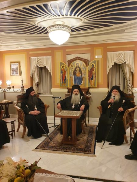 Στην προσφώνησή του προς τον Σεβασμιώτατο, ο π. Αλέξιος εκφράστηκε με θερμά λόγια και ευχαριστίες για τον κόπο στον οποίο υπεβλήθη και μετέβη στην Ιερά Μονή Ξενοφώντος για να τελέσει την ιερά πανήγυρη.
