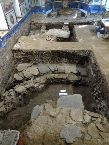 Σύμφωνα με την ανακοίνωση του Υπουργείου Πολιτισμού, «οι εργασίες έφεραν στο φως μεγάλο μέρος της αρχικής βυζαντινής τράπεζας του 10ου αιώνα (Εικ. 2), η οποία προκύπτει ότι ήταν επίσης σταυρόσχημη, όπως και η σημερινή. Εντοπίστηκε επίσης η μεγέθυνση της τράπεζας του 12ου αιώνα προς τα δυτικά (Εικ. 3) και τα κατά καιρούς επάλληλα δάπεδα και βάσεις των τραπεζιών, στοιχεία που μαρτυρούν τις ανακαινιστικές εργασίες που γίνονταν για ένα διάστημα 700 περίπου χρόνων. Τις επάλληλες φάσεις τεκμηριώνουν ένας ικανός αριθμός οστράκων από εφυαλωμένα αγγεία, τα οποία καλύπτουν ένα ευρύ χρονικό διάστημα από τα τέλη 10ου αι. έως και τα όψιμα μεταβυζαντινά χρόνια».