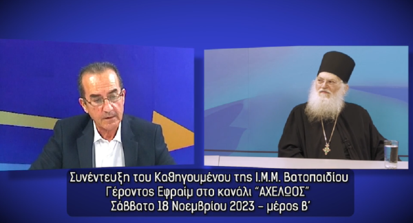 Στο 2ο μέρος της συνέντευξής του, στον τηλεοπτικό Σταθμό Αχελώος TV, ο Γέροντας Εφραίμ, Καθηγούμενος της Ι.Μ.Μ. Βατοπαιδίου, σε ερώτηση σχετικά με την Κάθοδο του Κυρίου στον Άδη και αν αποδέχονται όλοι το κήρυγμα Του, απαντά ότι αποδέχονται όσοι το έχουν ανάγκη. Θα σωθεί ο άνθρωπος που θέλει, αυτός που δεν θέλει δεν θα σωθεί, δεν θα πάει στη Βασιλεία των Ουρανών, λέει ο Γέροντας Εφραίμ.