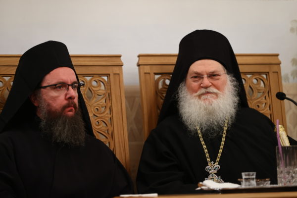 Μετά τον εσπερινό προσφέρθηκε αγιορείτικο κέρασμα στο Συνοδικό της Μονής. Εκεί το λόγο έλαβε ο Γέροντας Εφραίμ ο οποίος μίλησε για τους δύο βατοπαιδινούς Αγίους που προσέφεραν στην πανορθοδοξία, τον αγ. Σάββα τον Χιλανδαρινό και τον αγ. Μάξιμο τον Γραικό. Αναφέρθηκε στην προσφορά του Αγίου Όρους στην Ορθοδοξία με διαχρονική ιεραποστολική του διακονία.
