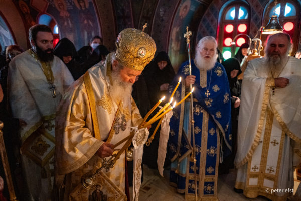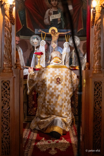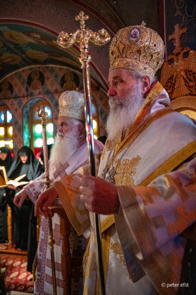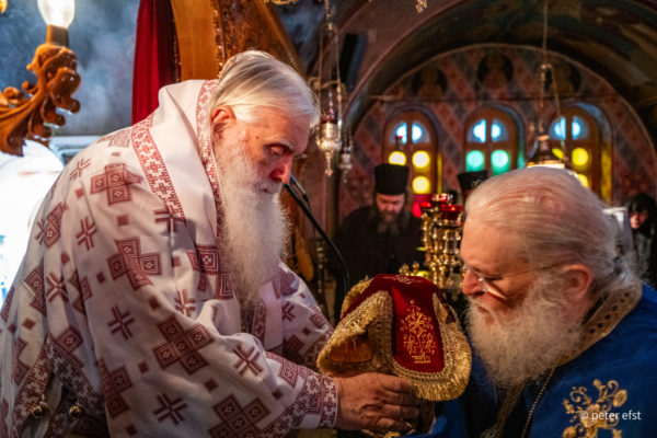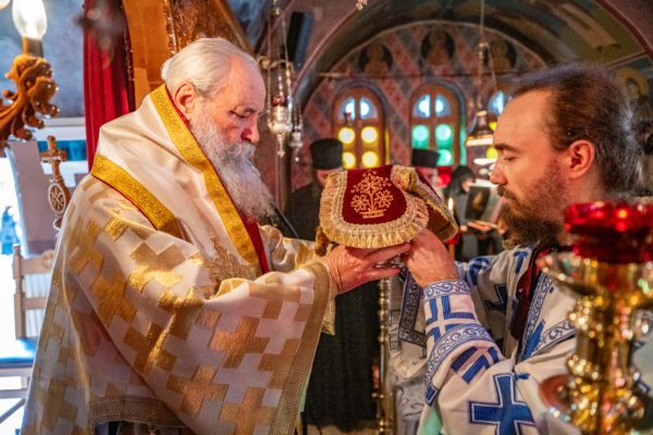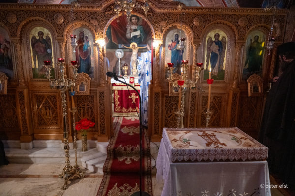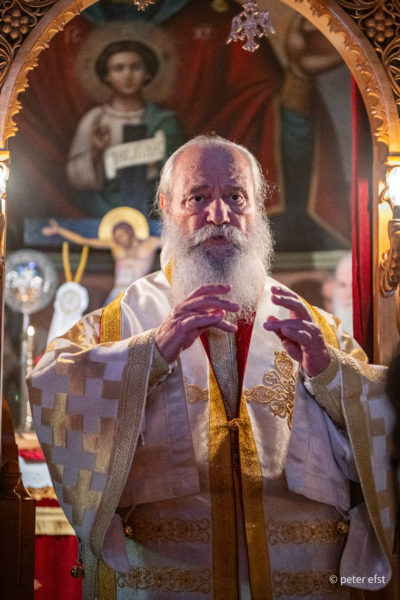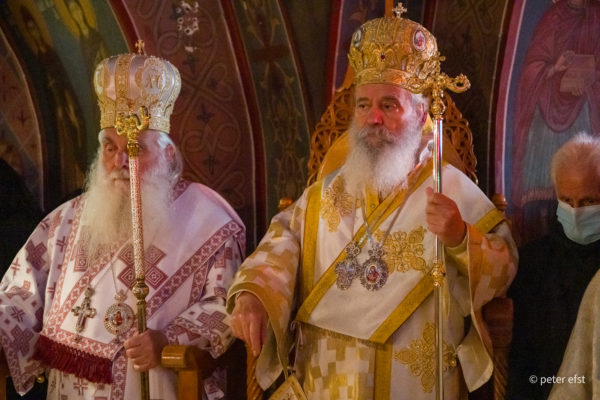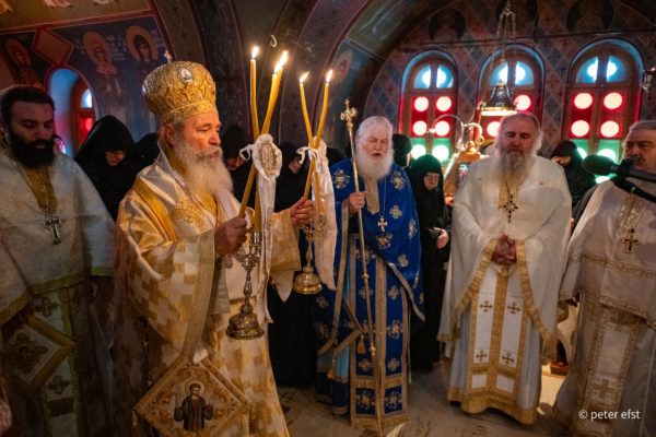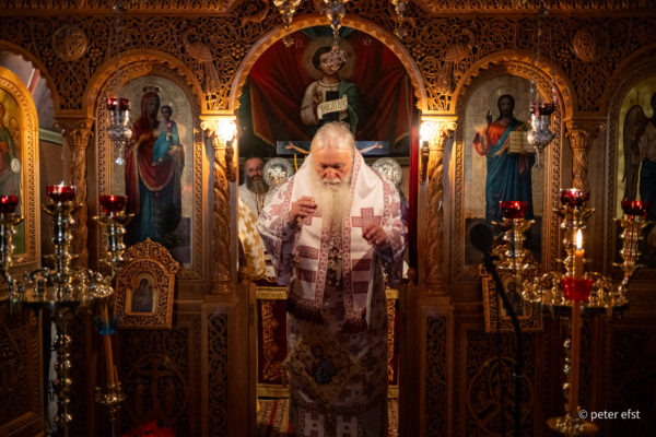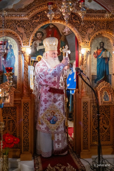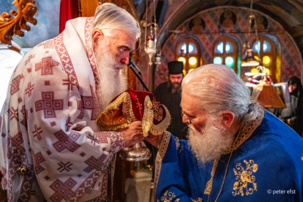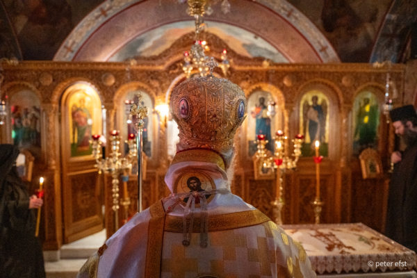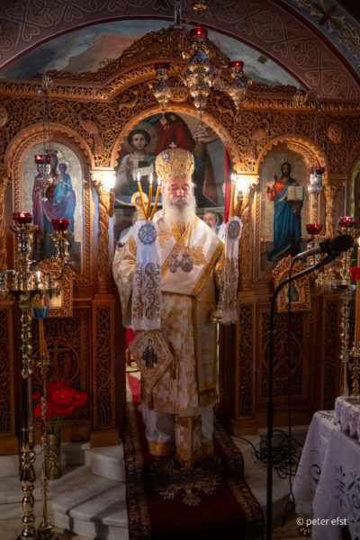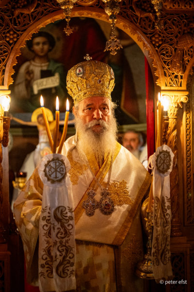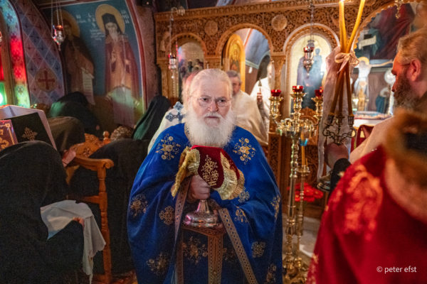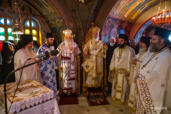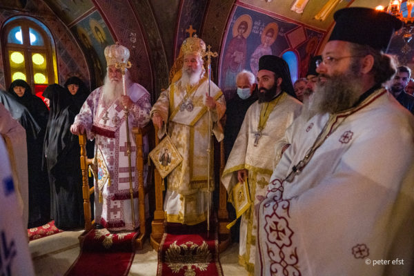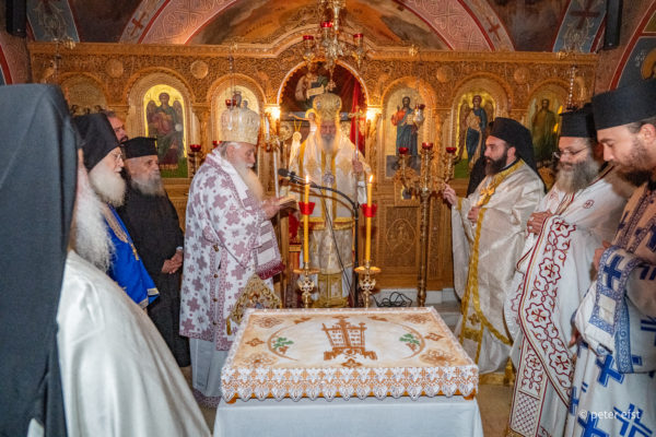 Της Ευχαριστιακής Συνάξεως προεξήρχε ο Μητροπολίτης Ύδρας, Σπετσών και Αιγίνης κ. Εφραίμ, συλλειτουργούντος του οικείου Επίσκοπου, Μητροπολίτου Αργολίδος κ. Νεκταρίου, πλαισιουμένων υπό του Πνευματικού της Αδελφότητος της Μονής Αρχιμανδρίτου Γέροντος Εφραίμ, Καθηγουμένου της Ι.Μ.Μ. Βατοπαιδίου, του Πρωτοσυγκέλλου της Ι.Μ. Ύδρας, Σπετσών και Αιγίνης Αρχιμανδρίτου Νεκταρίου Δαρδανού, του Γενικού Αρχιερατικού Επιτρόπου της Ι.Μ. Αργολίδος Πρωτοπρεσβυτέρου Πέτρου Αθανασόπουλου, του Ηγουμένου της Ι.Μ. Αγίου Νεκταρίου Γλυφάδας Αρχιμανδρίτου Νήφωνος και άλλων Πρεσβυτέρων.