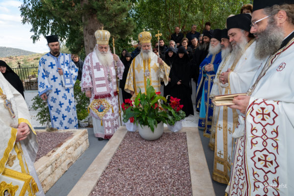Μετά το πέρας της Θείας Λειτουργίας τελέσθηκε Τρισάγιο επί του τάφου της μακαριστής Γεροντίσσης και ακολούθησε μοναστηριακή τράπεζα.