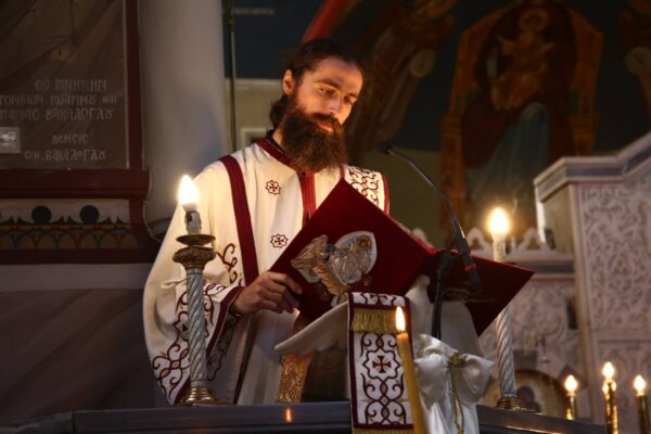 Του Όρθρου και της Θείας Λειτουργίας προεξήρχε ο Καθηγούμενος της Ιεράς Μεγίστης Μονής Βατοπαιδίου Γέροντας Εφραίμ με την συμμετοχή Βατοπαιδινών πατέρων και κληρικών της Ιεράς Μητροπόλεως Κορίνθου.