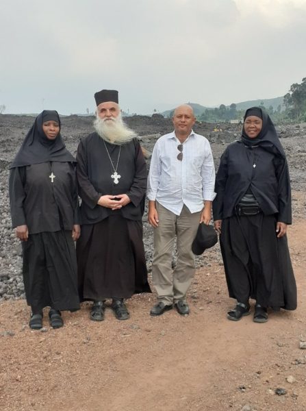 «Τώρα με θέλημα Θεού είμαι στην πόλι Γκόμα του Ανατολικού Κογκό», γράφει και εξηγεί: «Εδώ η Ιεραποστολή ξεκινά από το μηδέν. Μόλις επήραμε οικόπεδο και είμαστε στο τέλος της περιμάνδρωσης του. Μετά χαράς σημειώνω εδώ συνοπτικά με την άδεια του υπεύθυνου της Ομάδος ότι ευρίσκομαι στην πόλι Γκόμα 700.000 κάτοικοι του Ανατ. Κογκό για το έργο της Ορθοδοξίας μας. Ήδη αγοράσαμε το πρώτο οικόπεδο 4 εκταρίων. Σύντομα τελειώνει η περιμάνδρωσις του καί κατόπιν πρέπει να κτίσουμε την εκκλησία του Αγίου Γεωργίου. (Μένουμε ακόμη σε ενοίκιο με τον ντοπιο υπεύθυνο αρχιμ. Π. Χαρίτωνα. Κατόπιν το σπίτι μας, μικρό μοναστήρι για 3 μοναχές που έχουμε, σχολεία, οικοτροφεια κλπ. Ζητούμε την οικονομική σας βοήθεια για την συνέχιση του έργου μας. Επιτρέψτε μου μια προτροπή. Όσοι ημπορείτε από 10 ευρώ τον μήνα. Θα σας είμαι ευγνώμων».