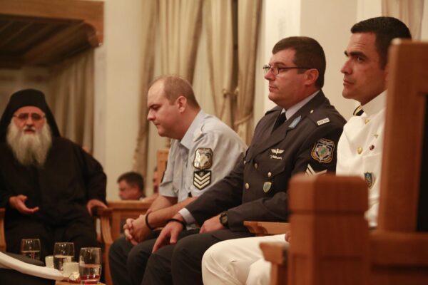 Μετά το πέρας του πανηγυρικού Εσπερινού ακολούθησε το κέρασμα στο συνοδικό, όπου εκεί ο γέροντας Εφραίμ ανέφερε λόγους οικοδομής για το πρόσωπο της Παναγίας και τόνισε τη μητρική κηδεμονία Της σε όλα τα προβλήματα και τις ανάγκες των ανθρώπων και αναφέρθηκε στα συνεχή καθημερινά θαύματα Της.