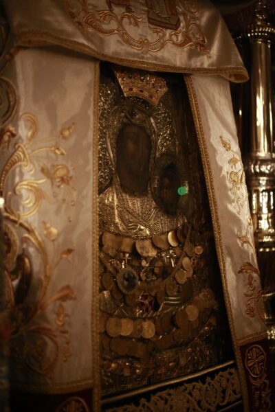 Το Καθολικό της Μονής ήταν κατάμεστο από πατέρες του Αγίου Όρους και ιερείς από διάφορα μέρη και πιστούς κάθε ηλικίας οι οποίοι έσπευσαν να προσευχηθούν και να αποθέσουν τις ελπίδες τους στη χάρη της Παναγίας.