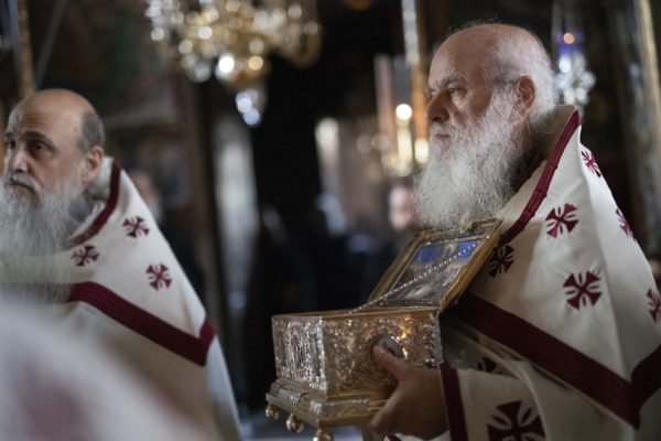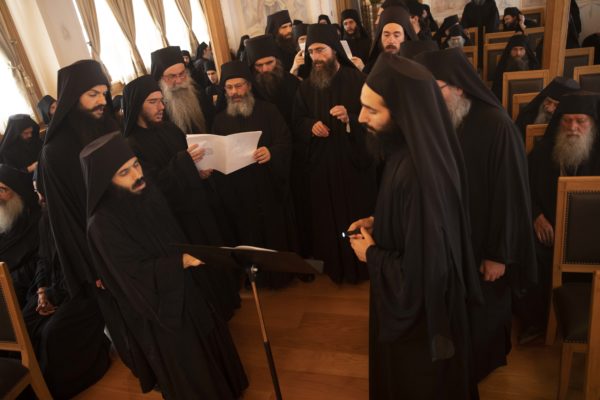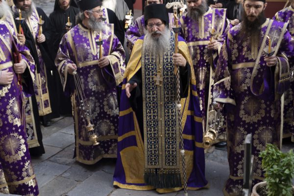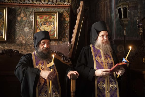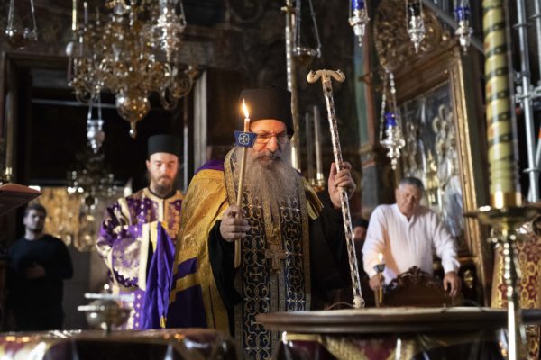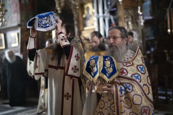 Το πρωί, στο Καθολικό της Μονής, τελέσθηκε Ιερατικό Συλλείτουργο, προεξάρχοντος του Γέροντος Ελισαίου, πλαισιουμένου από Βατοπαιδινούς και άλλους Αγιορείτες Πατέρες.