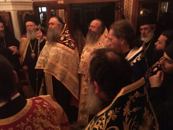 Τρισαρχιερατικός μεθέορτος εσπερινός στο κελλί του Ιερού Χρυσοστόμου