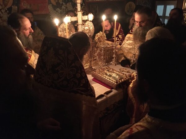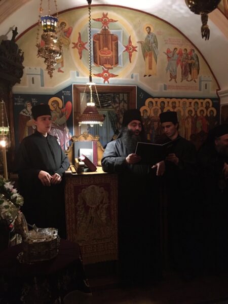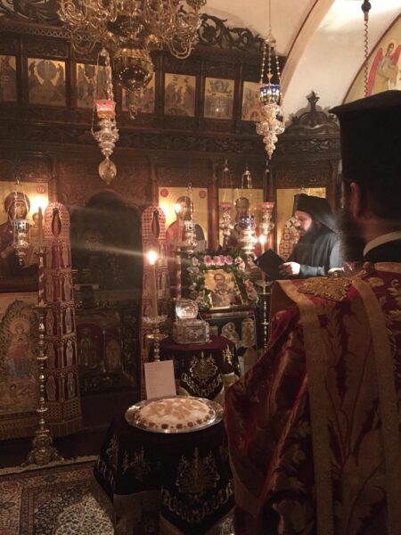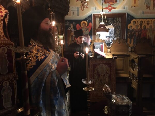 Τρισαρχιερατικός μεθέορτος εσπερινός στο κελλί του Ιερού Χρυσοστόμου