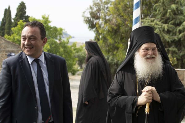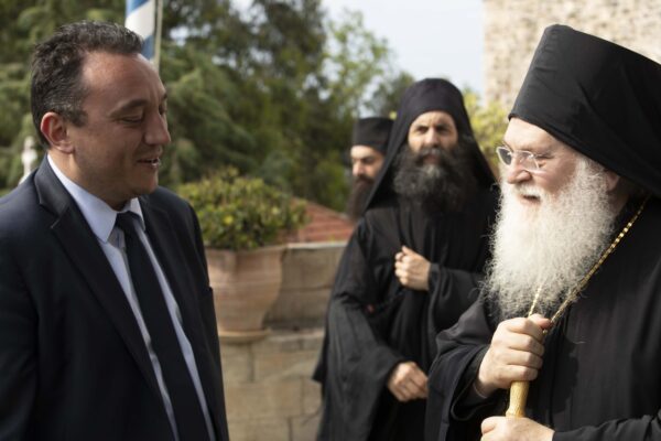 Η υποδοχή του υφυπουργού Εξωτερικών στην Ι.Μ.Μ Βατοπαιδίου