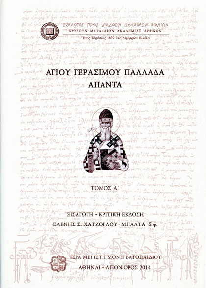Κυκλοφορεί ο πρώτος τόμος των «Απάντων» του συγγραφικού έργου του Αγίου Γερασίμου Παλλαδά, Πατριάρχη Αλεξανδρείας. Ο τόμος είχε εκδοθεί με αφορμή την συμπλήρωση 300 ετών (1714-2014) από την κοίμηση του Αγίου.