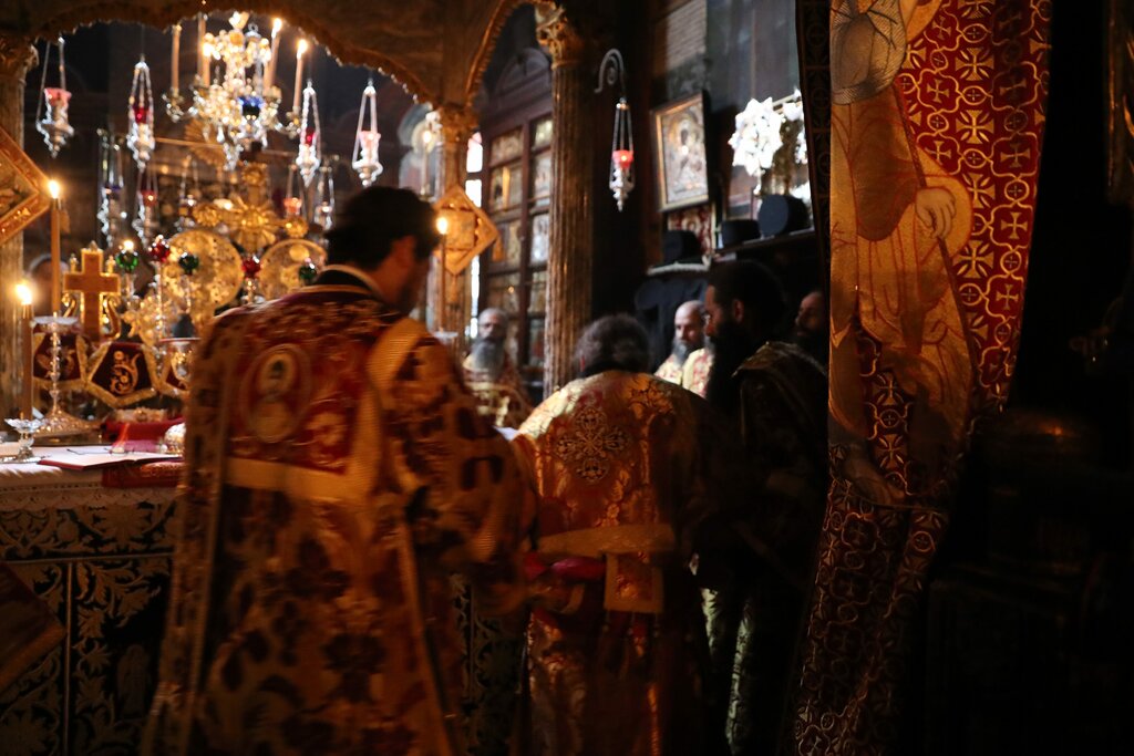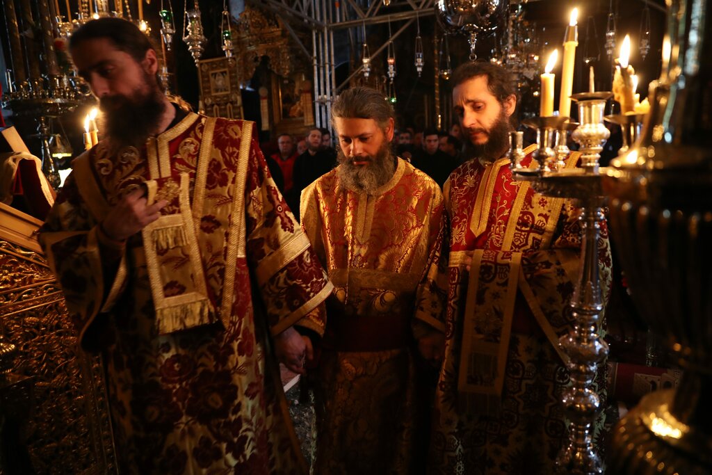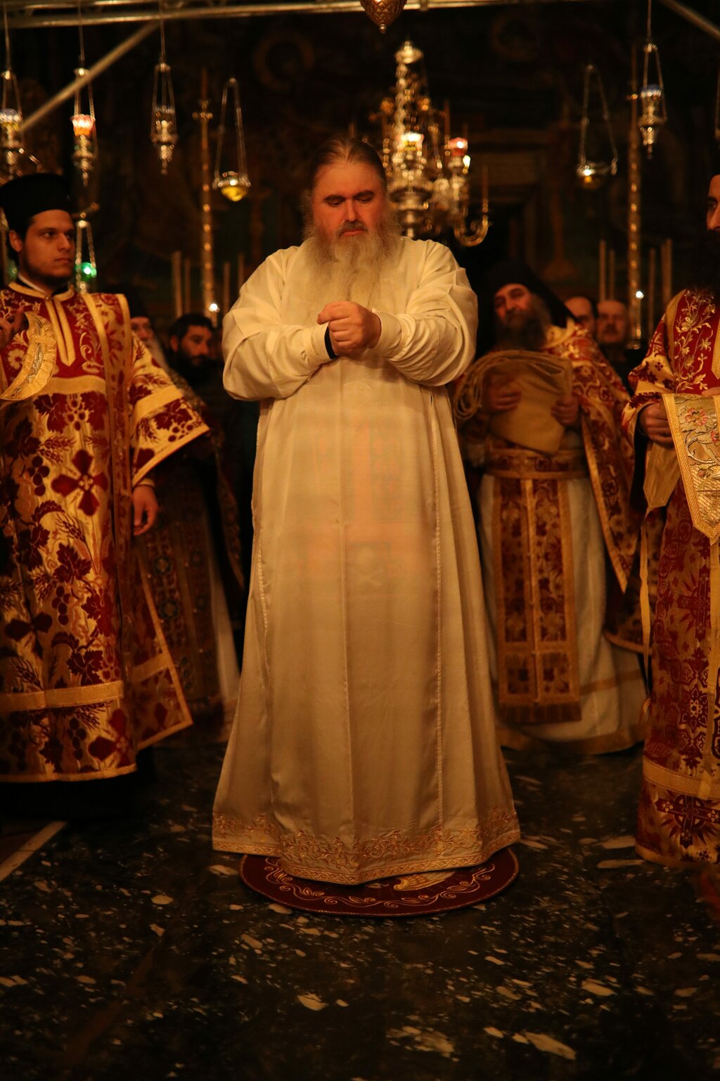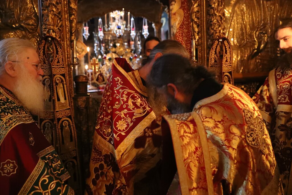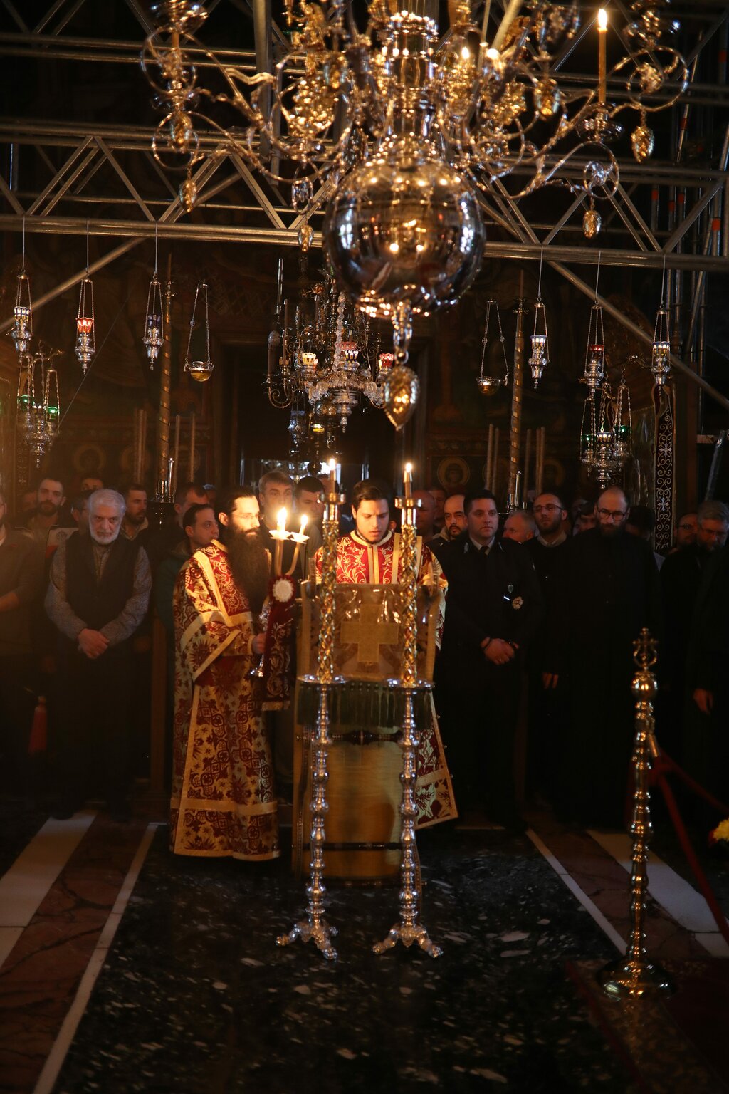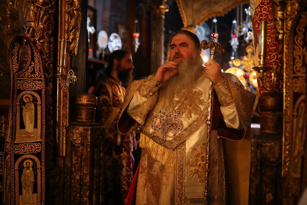 Στην ιερά αγρυπνία συμπροσευχήθηκαν ο Καθηγούμενος της Ιεράς Μονής Βατοπαιδίου Γέροντας Εφραίμ και ο Καθηγούμενος της Ιεράς Μονής Χιλανδαρίου Αρχιμανδρίτης Μεθόδιος, κατά το έθος, καθ’ ότι ο σύνδεσμος των δύο Μονών είναι άρρηκτος από της ιδρύσεώς τους. Κατά τη διάρκεια της Θείας Λειτουργίας ο Σεβασμιώτατος τέλεσε το μυστήριο της εις διάκονον χειροτονίας του αδελφού της Μονής Βατοπαιδίου πατρός Φιλοθέου. Ο Μητροπολίτης και οι δύο Ηγούμενοι, απηύθυναν λόγο στο συνοδικό και στην τράπεζα δι’ ολίγων για την εορτή του Ευαγγελισμού και το πρόσωπο της Παναγίας μας, αλλά και για τον Νεοφανή Σέρβο Άγιο της Εκκλησίας μας Ιουστίνο Πόποβιτς (του οποίου το όνομα φέρει ο Σεβασμιώτατος), καθ’ ότι σήμερα συμπληρώνονται 40 χρόνια από την κοίμηση και 125 από τη γέννηση του μεγάλου αυτού Θεολόγου της Εκκλησίας μας.