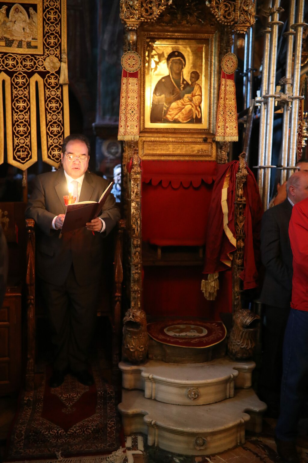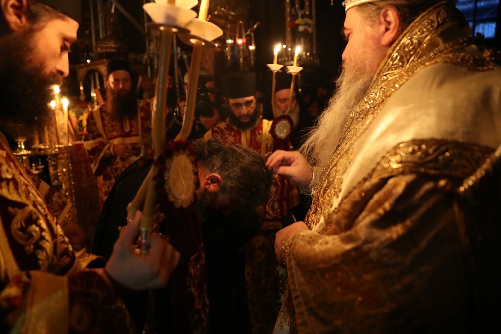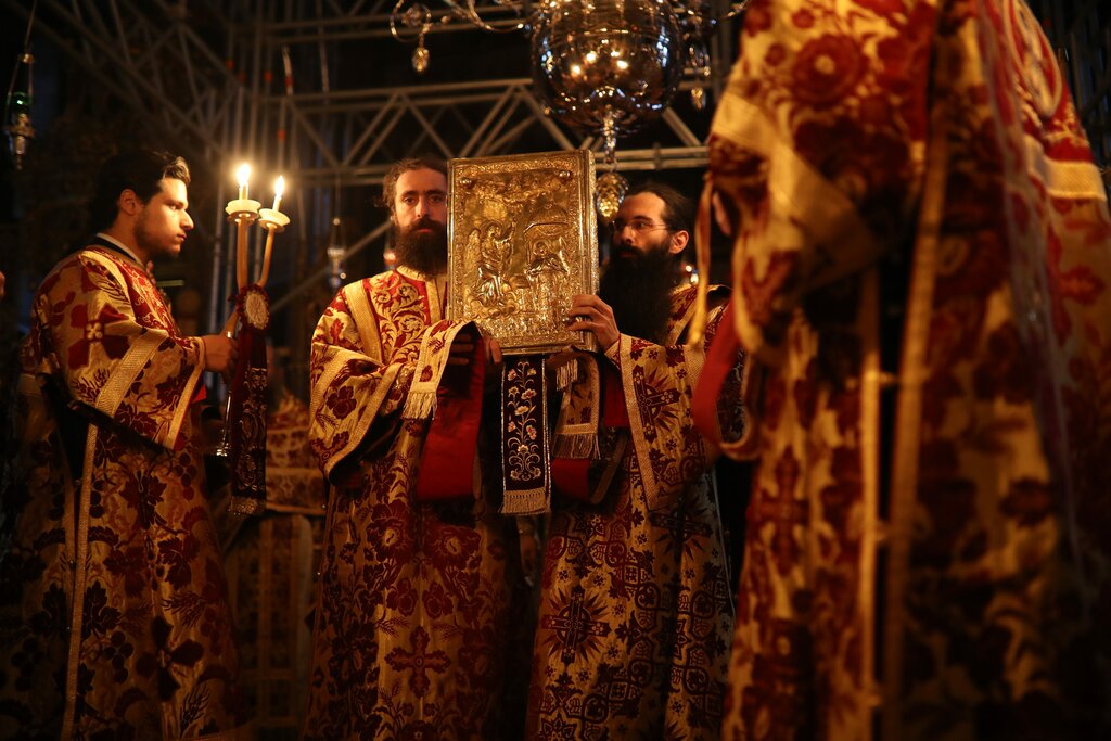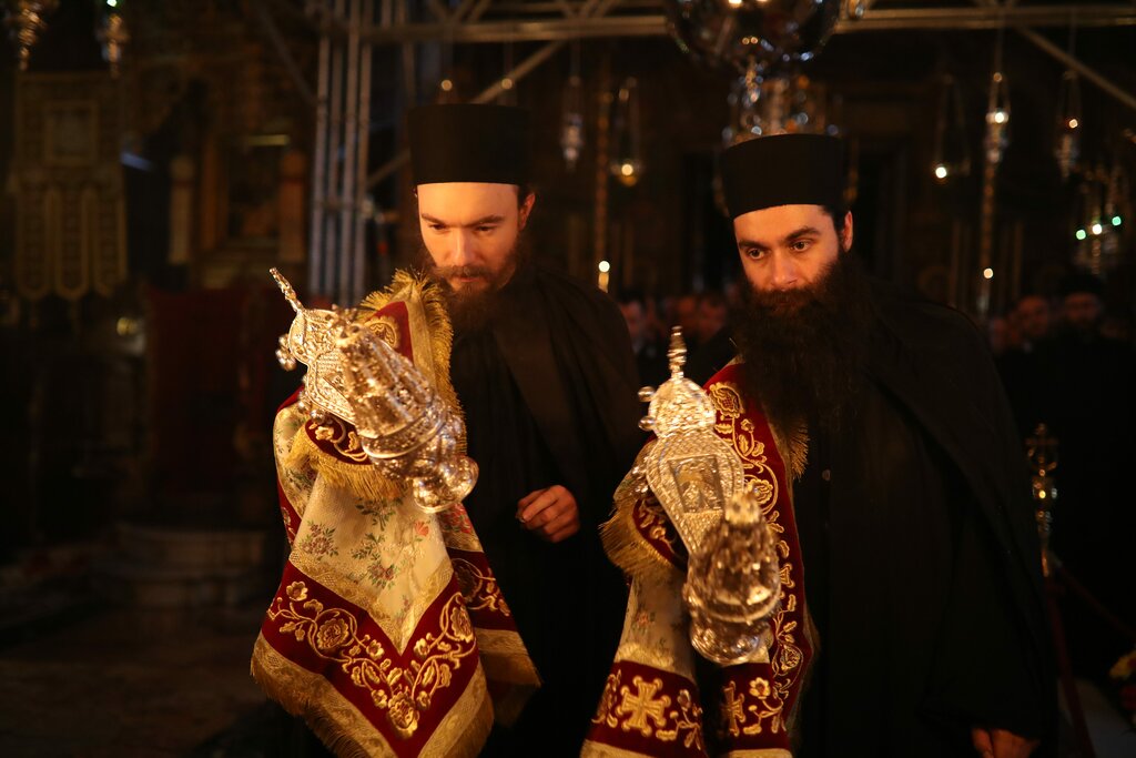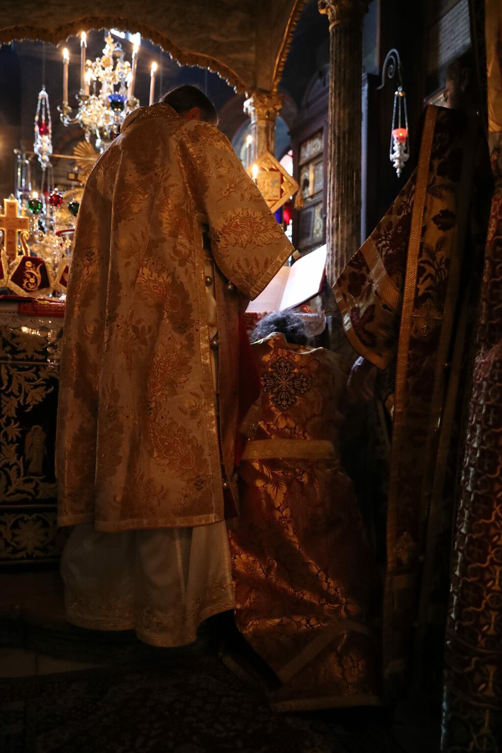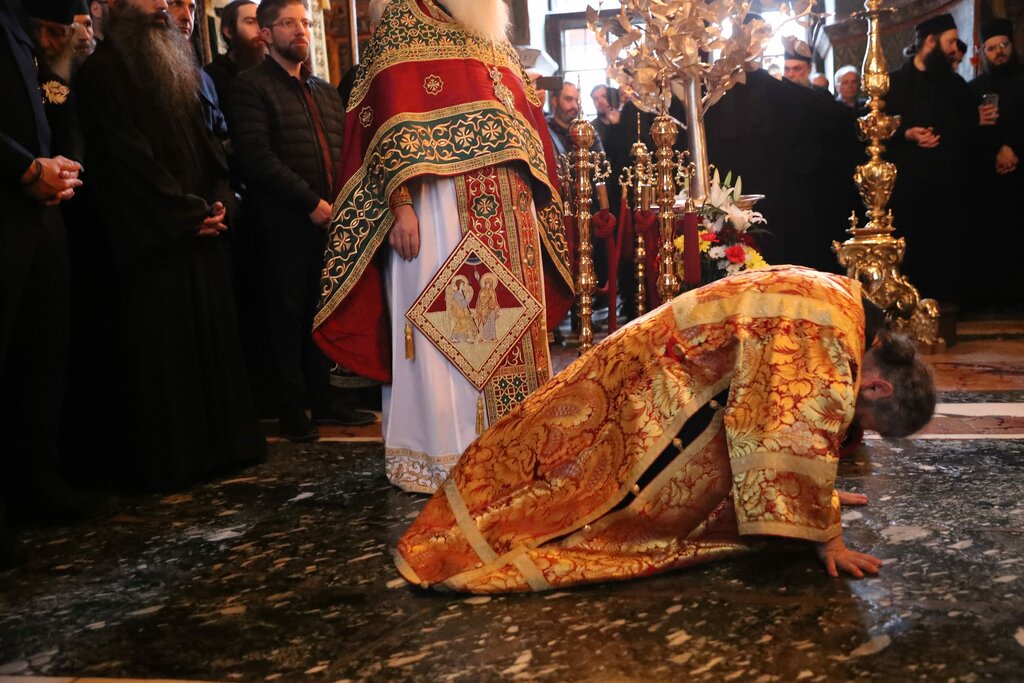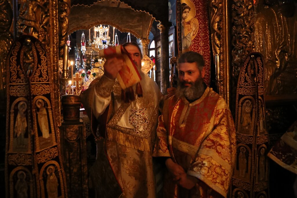 Στην ιερά αγρυπνία συμπροσευχήθηκαν ο Καθηγούμενος της Ιεράς Μονής Βατοπαιδίου Γέροντας Εφραίμ και ο Καθηγούμενος της Ιεράς Μονής Χιλανδαρίου Αρχιμανδρίτης Μεθόδιος, κατά το έθος, καθ’ ότι ο σύνδεσμος των δύο Μονών είναι άρρηκτος από της ιδρύσεώς τους. Κατά τη διάρκεια της Θείας Λειτουργίας ο Σεβασμιώτατος τέλεσε το μυστήριο της εις διάκονον χειροτονίας του αδελφού της Μονής Βατοπαιδίου πατρός Φιλοθέου. Ο Μητροπολίτης και οι δύο Ηγούμενοι, απηύθυναν λόγο στο συνοδικό και στην τράπεζα δι’ ολίγων για την εορτή του Ευαγγελισμού και το πρόσωπο της Παναγίας μας, αλλά και για τον Νεοφανή Σέρβο Άγιο της Εκκλησίας μας Ιουστίνο Πόποβιτς (του οποίου το όνομα φέρει ο Σεβασμιώτατος), καθ’ ότι σήμερα συμπληρώνονται 40 χρόνια από την κοίμηση και 125 από τη γέννηση του μεγάλου αυτού Θεολόγου της Εκκλησίας μας.