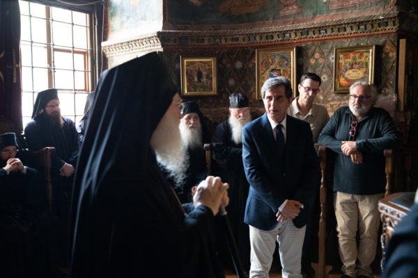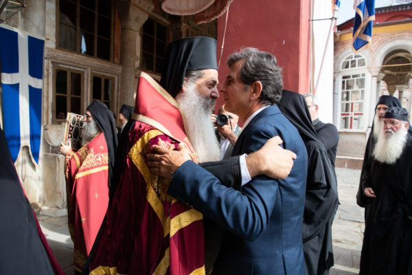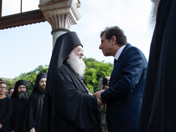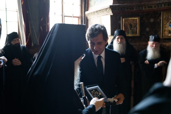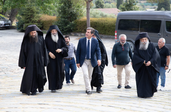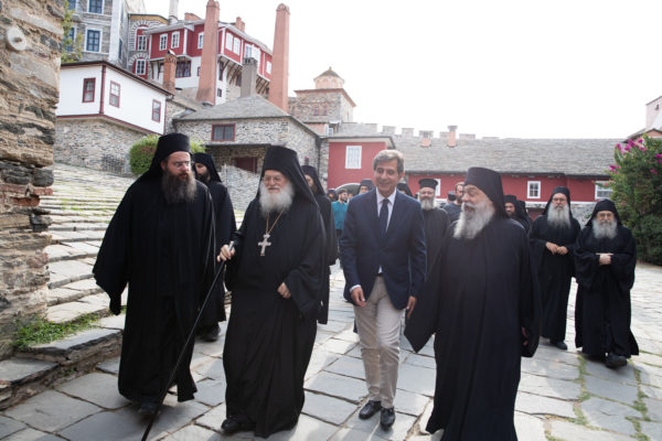 Τον υφυπουργό Εσωτερικών αρμόδιο για θέματα Μακεδονίας και Θράκης και βουλευτή Ά Θεσσαλονίκης, Κωνσταντίνο Π. Γκιουλέκα, υποδέχθηκε ο Καθηγούμενος της Ιεράς Μεγίστης Μονής Βατοπαιδίου, Γέροντας Εφραίμ και η βατοπαιδινή αδελφότητα, σύμφωνα με την μοναστική τάξη και αγιορειτική παράδοση στην είσοδο της Μονής.