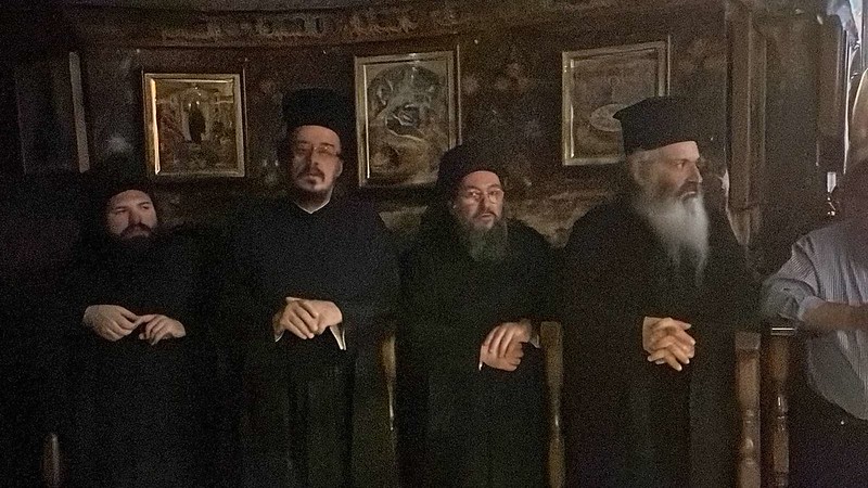 Τον Σεβασμιώτατο Μητροπολίτη Πειραιώς κ. Σεραφείμ και την συνοδεία του υποδέχθηκε στην είσοδο της Ιεράς Μονής ο Καθηγούμενος Γέροντας Εφραίμ και η Βατοπαιδινή Αδελφότητα.