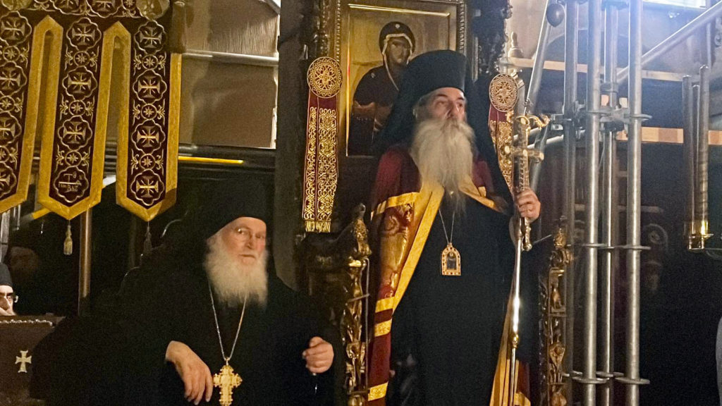 Τέλος ο Σεβασμιώτατος αναφέρθηκε στον Οικουμενικό Πατριάρχη κ.κ. Βαρθολομαίο, μεταξύ άλλων λέγοντας: «Επιτρέψτε μου να εκφράσω απείρους και ευγνώμονας ευχαριστίας εις την Σεπτήν κορυφήν της Ορθοδόξου ημών Καθολικής και Αποστολικής Εκκλησίας, τον Παναγιώτατο Οικουμενικό Πατριάρχη Κωνσταντινουπόλεως και Νέας Ρώμης κ. Βαρθολομαίο, ο οποίος προφρόνως επευλόγησε και επεδοκίμασε και κανονικώς κατετέθη ως Επίσκοπος του Αγιωνύμου Όρους την ημετέραν φιλάδελφον, εξόχως τιμητικήν και ιεράν πρόσκλησιν προς την ελαχιστότητά μου να προσέλθω ως ταπεινός προσκυνητής και να ανταποδώσω, όση είναι η δύναμις ένεστι, την ευγνωμοσύνη μου στην Μητέρα Του Θεού και των ανθρώπων σ’ αυτό το Ιερό παλλάδιο, σ’ αυτή την Μονή που είναι όντως Θεοσκέπαστος και Θεοφρούρητος αλλά και Παναγιοσκέπαστος και Παναγιοφρούρητος».