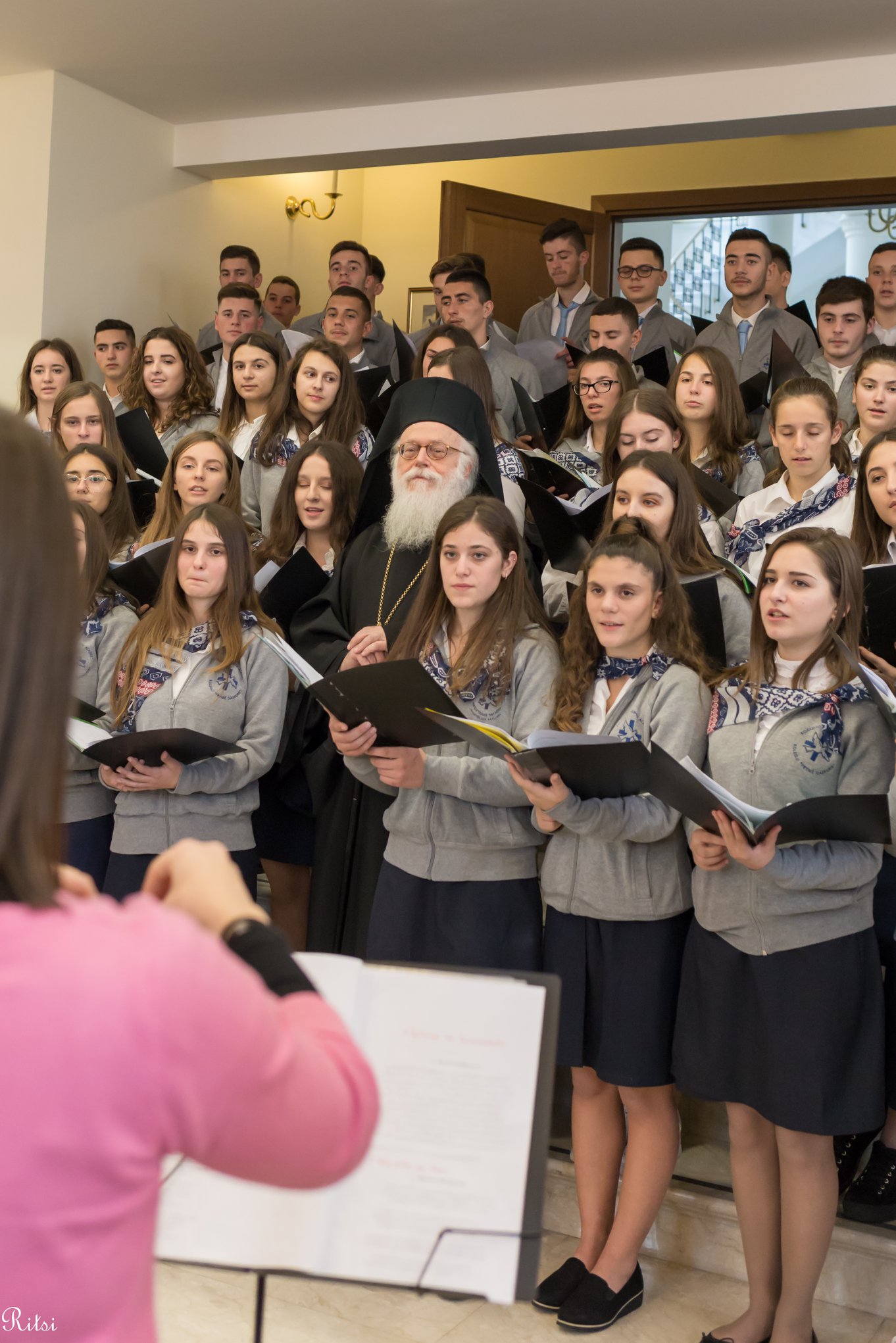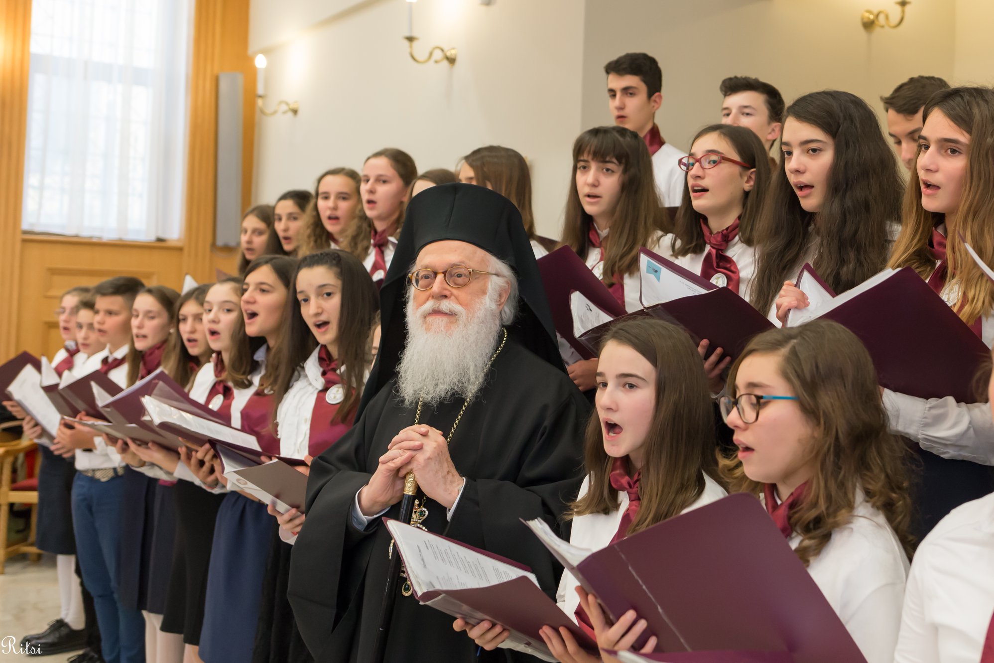 Αφού παρακολούθησαν τη Θεία Λειτουργία, τα παιδιά συνοδευόμενα από τους δασκάλους τους έγιναν δεκτοί από τον Αρχιεπίσκοπο στην αίθουσα του Συνοδικού Μεγάρου, όπου τραγούδησαν κάλαντα σε από διάφορες περιοχές της Αλβανίας αλλά και της Ελλάδας. Εκείνο που έκανε ιδιαίτερη εντύπωση ήταν το γεγονός ότι είχαν φροντίσει μαζί με τους δασκάλους τους να μεταφράσουν στίχους και στην αλβανική αλλά και να αφομοιώσουν τραγούδια Χριστουγέννων στην Αγγλική και τη Γαλλική.