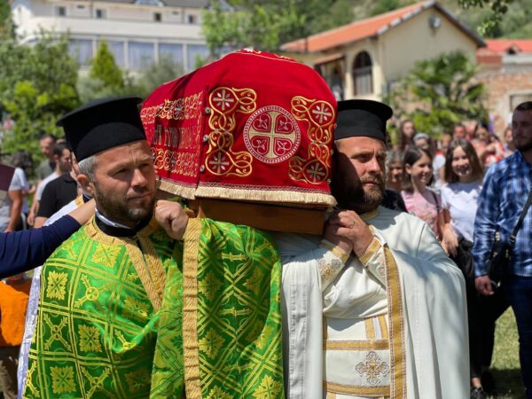 Σήμερα το πρώι τελέστηκε πανηγυρική Θεία Λειτουργίας, προεξάρχοντος του Σεβ. Μητροπολίτου κ. Αντωνίου και συλλειτουργούντων κληρικών της Μητροπόλεως. “Λόγω των μέτρων φέτος δεν κατέστη δυνατή η προσέλευση πιστών από άλλες χώρες όπως το Μαυροβούνιο και η Σερβία” τονίζεται στη σχετική ανακοίνωση της Μητροπόλεως.